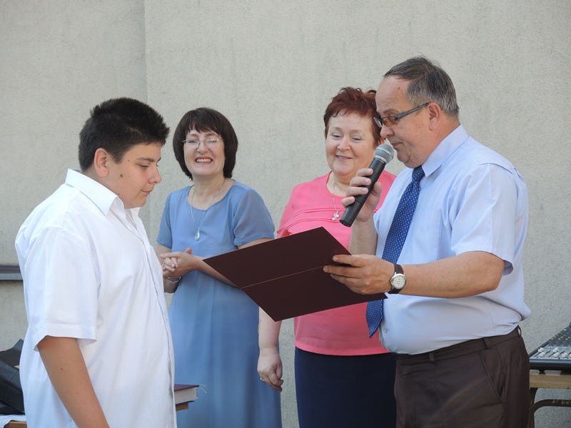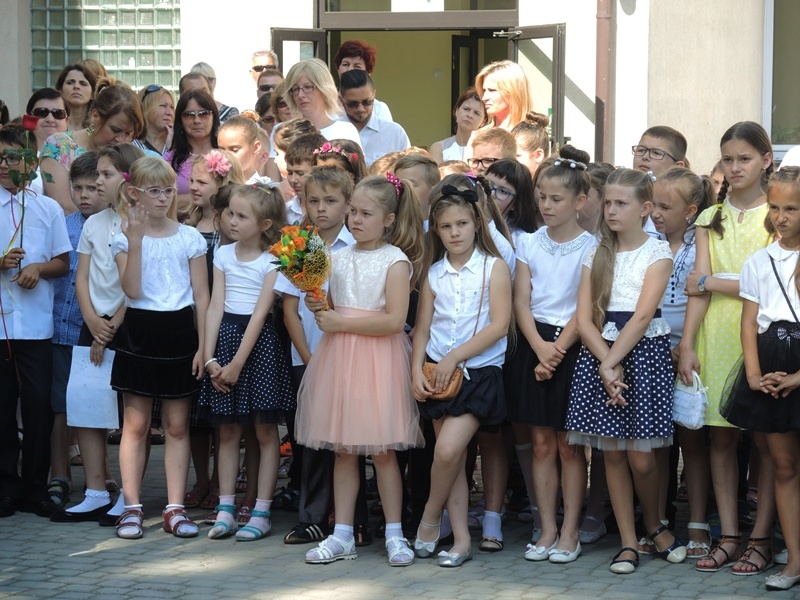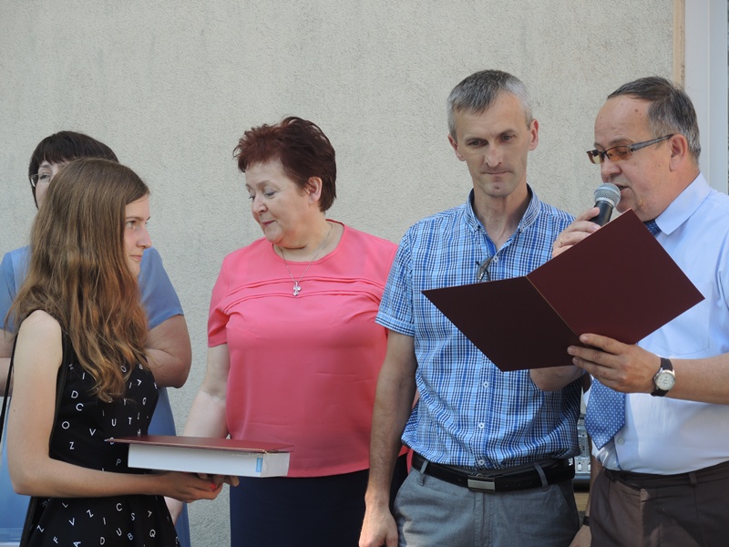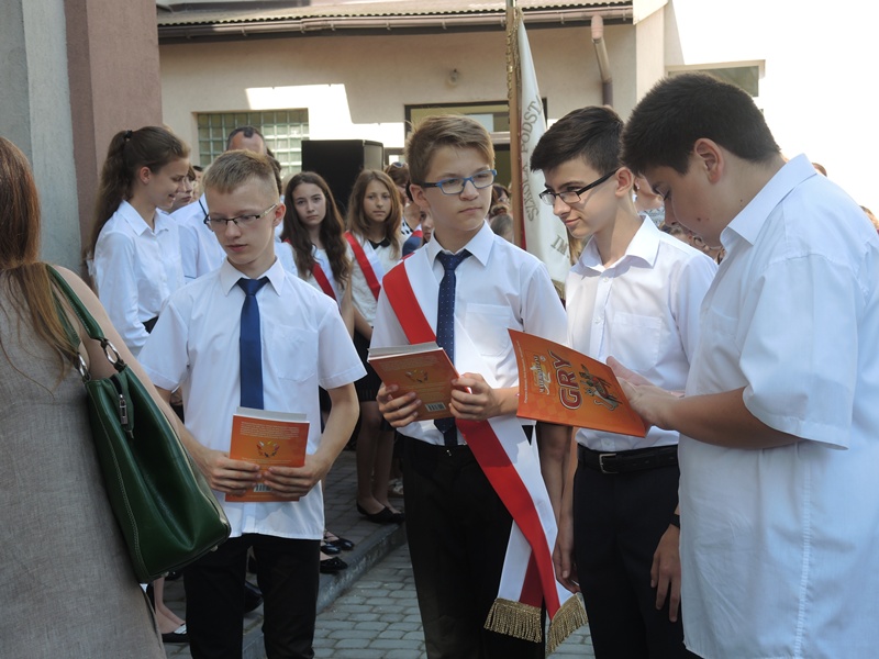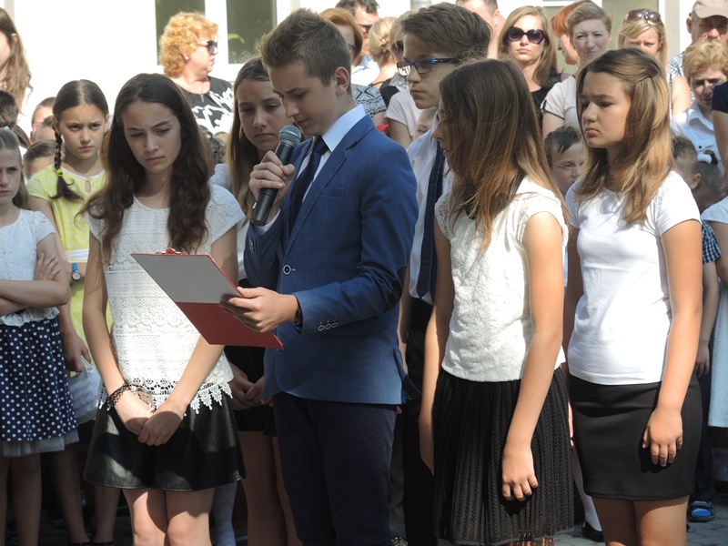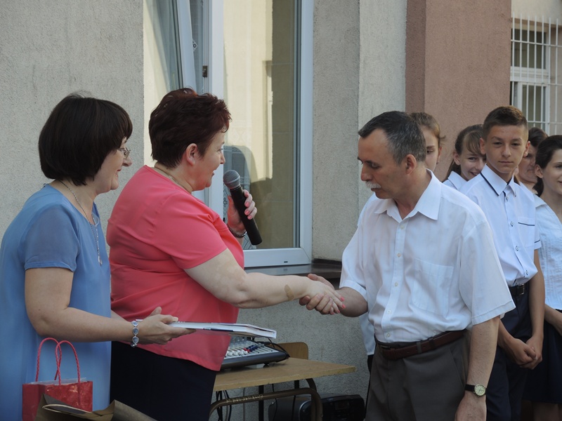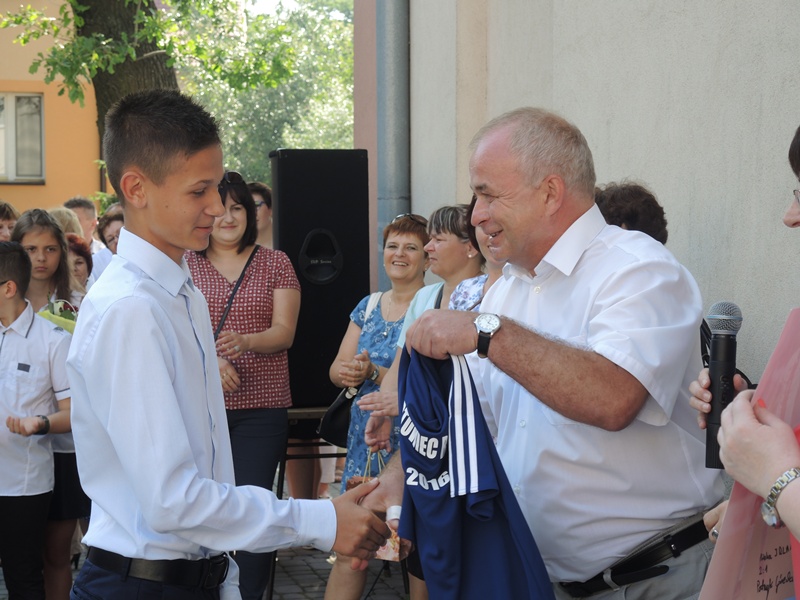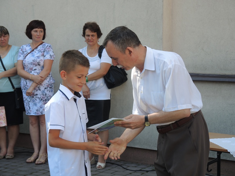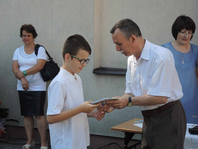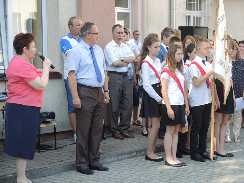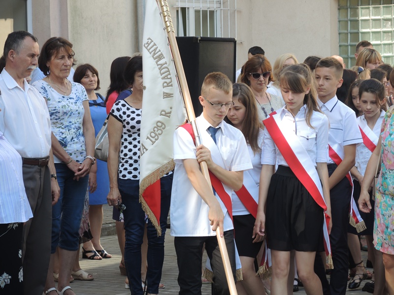 W dniu 24 czerwca br. odbyła się uroczystość zakończenia roku szkolnego 2015/2016. Na uroczystość przybyli odświętnie ubrani uczniowie klas I-VI, nauczyciele Szkoły Podstawowej oraz Rodzice uczniów. Po odśpiewaniu hymnu państwowego nastąpiło uroczyste wprowadzenie przez uczniów klas szóstych sztandaru szkoły, który został przekazany uczniom młodszych klas. Pani dyrektor Maria Jędrejko po powitaniu zebranych podsumowała mijający rok szkolny, przedstawiając m.in. największe osiągnięcia, jakie były udziałem uczniów szkoły podstawowej. Najwybitniejsi uczniowie zostali uhonorowani cennymi nagrodami ufundowanymi przez Urząd Miasta Radymno. W imieniu p. Burmistrza nagrody wręczał p. Sekretarz Urzędu – Janusz Wajhajmer. Otrzymali je: Justyna Gołdy (kl. 6a) za najwyższe wyniki w nauce „Primus inter pares” oraz jako najlepsza Polonistka i Jarosław Kurasz (kl. 6a) – jako najlepszy Matematyk i Anglista. Dodatkowo listy gratulacyjne otrzymali także rodzice wymienionych uczniów. Również nauczyciele sprawujący opiekę naukową nad wymienionymi uczniami, w osobach p. Urszuli Tereszko, p. Elżbiety Kawulki i p. Jana Konowalika, otrzymali z rąk p. dyrektor specjalne podziękowania i nagrody. W dalszej części uroczystości zostali nagrodzeni uczniowie, którzy zdobywali czołowe miejsca w organizowanych ostatnio różnych konkursach wiedzy. Specjalne wyróżnienie, dla najwybitniejszego sportowca szkoły, otrzymał z rąk p. Wiesława Lufta, uczeń klasy 6a Hubert Świecarz. Na zakończenie uroczystości p. dyrektor złożyła uczniom życzenia udanego i bezpiecznego wypoczynku wakacyjnego, po czy uczniowie rozeszli się do swoich klas, gdzie z rąk wychowawców otrzymali świadectwa promocyjne do następnej klasy lub świadectwa ukończenia szkoły.