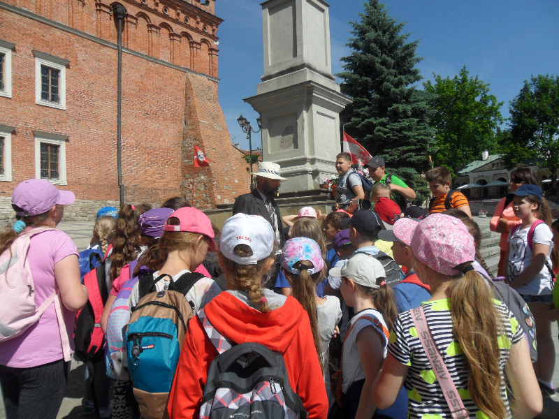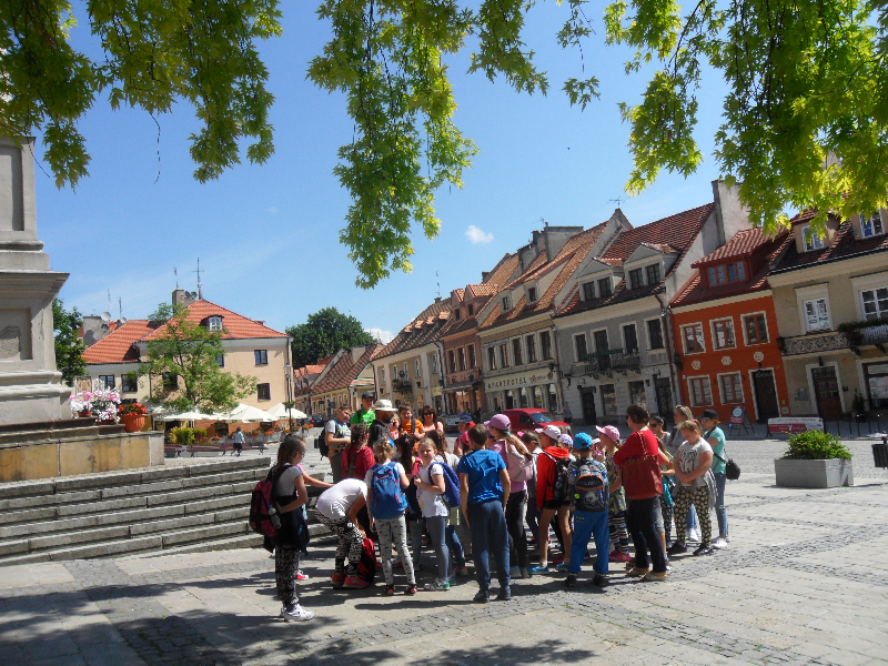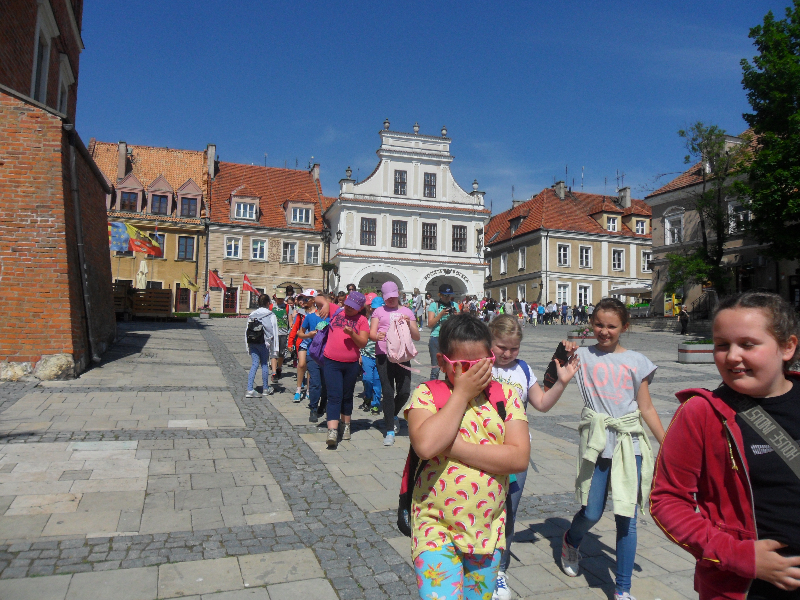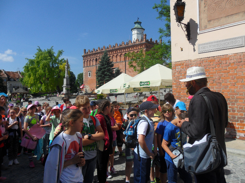 Dnia 13 czerwca 2016 r. odbyła się jednodniowa wycieczka , w której wzięły udział klasy: III A, B, C wraz z opiekunami. Na miejsce dotarliśmy autokarem. O godzinie 1000 spotkaliśmy się z przewodnikiem. Na początku spacerowaliśmy po rynku podziwiając zabytki, wysłuchaliśmy opowieści o historii miasta. Później przeszliśmy przez Bramę Opatowską. Z wieży, która tu się znajdowała podziwialiśmy panoramę miasta. Następnie zobaczyliśmy zbrojownię i salę tortur. Poznaliśmy legendę o dzielnej Halinie Krępiance, która uratowała miasto przed najazdem Tatarów. Spotkaliśmy średniowiecznego rycerza, który z zapałem i humorem przedstawiał nam życie księżniczek i rycerzy. Przeszliśmy także podziemną trasą. Głodni i zmęczeni udaliśmy się na obiad do restauracji „Pod Ciżemką”. Kolejną atrakcją wycieczki, był Wąwóz Świętej Królowej Jadwigi, którym dotarliśmy nad rzekę. Rejs statkiem po Wiśle był jednym z ostatnim punktów naszej wyprawy. Mieliśmy wtedy możliwość podziwiania pięknych widoków w towarzystwie mew. Każdy, kto chciał, otrzymał na rękę pieczątkę z kotwicą jako symbol tego rejsu. Ostatnim etapem wycieczki był zakup pamiątek. O godzinie 1600 pożegnaliśmy Sandomierz. W domu byliśmy o godzinie 1900. Wycieczka była bardzo udana.