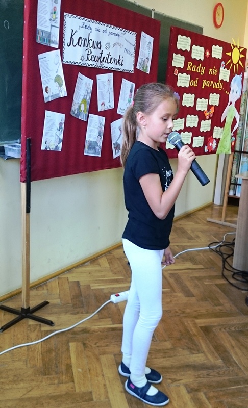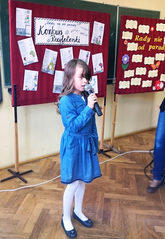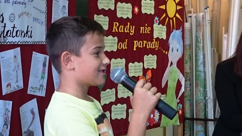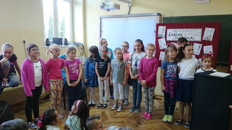 W poniedziałek klasy piąte i szóste tworzyły plakaty ilustrujące tegoroczne hasło imprezy . Konkurs wygrała klasa VI a, zaś po niej następne miejsca zajęła klasa VI b i Klasa V a. We wtorek odbyły się plastyczne zmagania z tematem dobrych rad klas młodszych. Pierwsze miejsce zdobyła Łucja Wolanin z klasy IV c, drugie Sylwia Wołosz z klasy IV c, trzecie Sandra Sas z klasy IV b. Wyróżnienia powędrowały do rąk Otylii Stryczek – III c, Magdy Boho – III b i Mai Biesiadeckiej – II b. W środę uczestniczyliśmy w konkursie recytatorskim. Dzieci wspaniale recytowały wierszyki z morałem Małgorzaty Strzałkowskiej. Oto zwycięzcy w poszczególnych kategoriach: