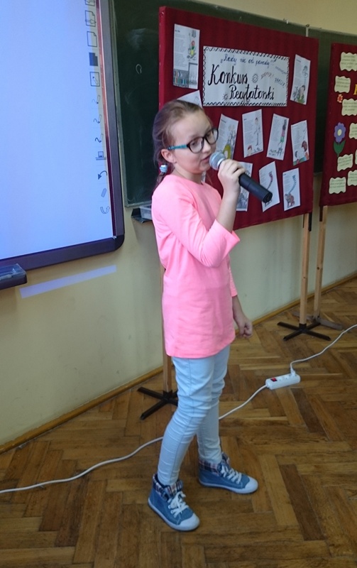 Decyzją jury w kategorii klas trzecich i czwartych I miejsce zdobyła Weronika Tworzydło – III b, drugie Harmina Bagińska – III c i Natalia Segiń – IV c, trzecie Julia Indra – III b, wyróżniono recytację Kasi Mil – III c. Wszystkim uczestnikom konkursów serdecznie gratulujemy!