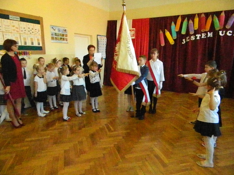 Tegoroczna uroczystość miała kameralny charakter, gdyż przystąpiło do niej tylko siedmioro nowych uczniów. Otwarcia ceremonii dokonała Pani Dyrektor Maria Jędrejko witając dzieci, ich rodziców oraz przewodniczącą Rady Rodziców Panią Irenę Segiń.