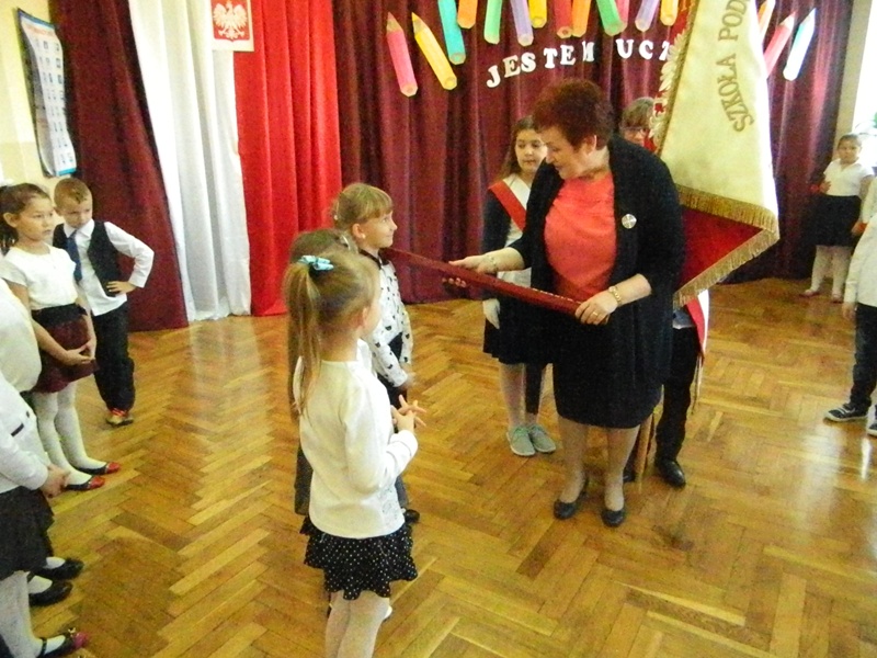 Przed pasowaniem uczniowie zaprezentowali swoje umiejętności w programie artystycznym wykazując swoją gotowość, by stać się prawdziwymi uczniami. Następnie „pierwszaki” złożyły uroczyste ślubowanie na sztandar szkoły. Po ślubowaniu Pani Dyrektor dokonała aktu pasowania.