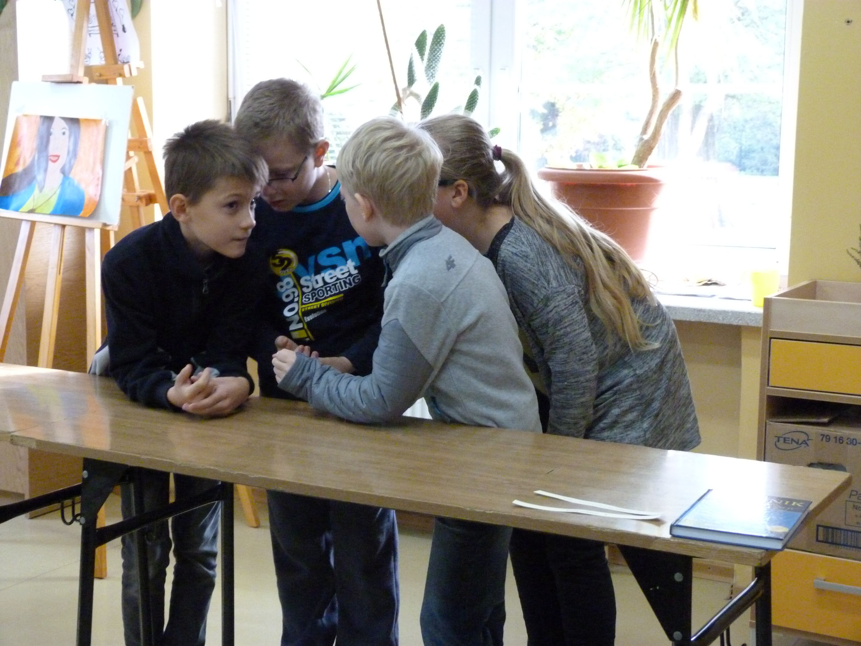 Reprezentanci klasy 5b: Filip Bącal, Szymon Biały, Ola Sobolewska, Wiktor Szałyga.
