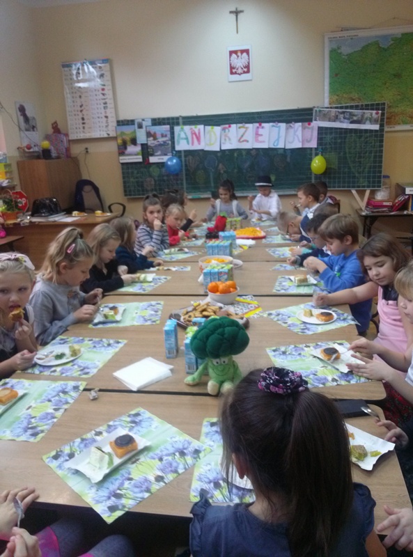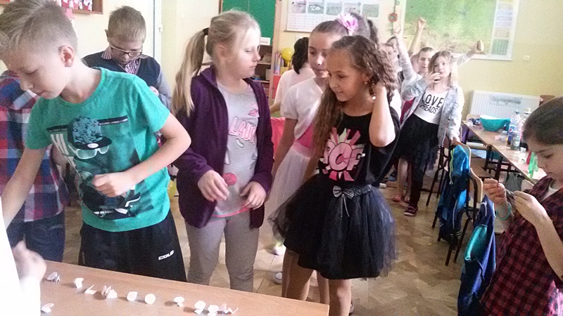 Zgodnie z polską tradycją w wigilię Św. Andrzeja obchodziliśmy w naszej szkole wieczór wróżb i zabaw andrzejkowych. Uczniowie przeżyli wspaniały wieczór, pełen magii, konkursów i tańca przy dźwiękach znanych przebojów. Wszyscy bawili się doskonale. Dziewczęta mogły poznać imię swojego przyszłego wybranka, chłopcy zaś wybranki. Kto chciał przekonać się, czy będzie miał powodzenie w miłości, ustawiał buty i kierował je w stronę drzwi śledząc, czy jego (jej) jako pierwszy przekroczy próg. Największym uznaniem cieszyły się konkursy taneczne. Wspólne zabawy sprawiły dzieciom wiele radości i z pewnością pozostaną na długo w ich pamięci.