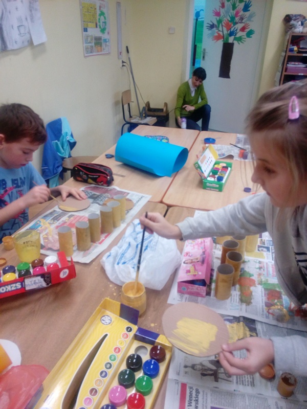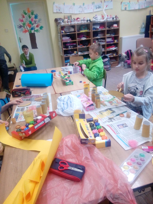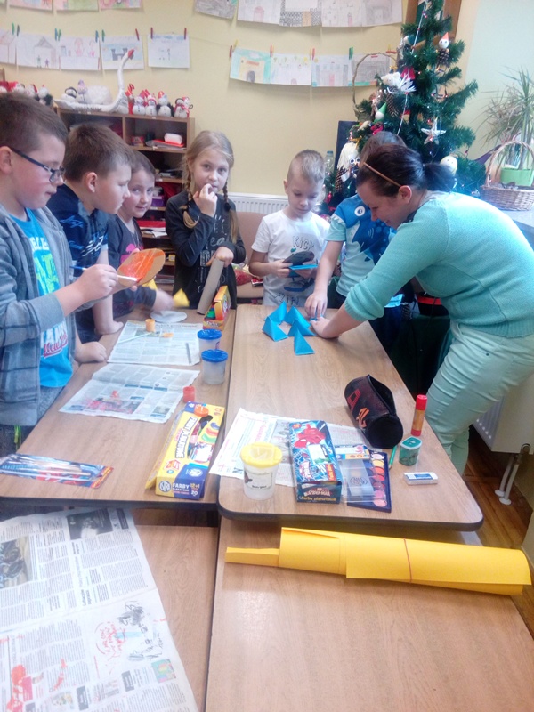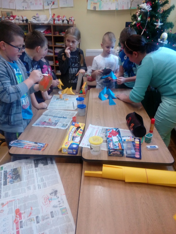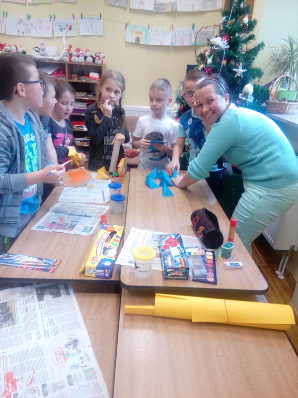 W ramach współpracy z rodzicami, wykorzystując pasję i zdolności plastyczne jednej z mam dzieci z kl. III a, zaprosiliśmy panią M. Lisowską na lekcję zajęć technicznych do tej klasy, aby podzieliła się swoimi pomysłami na wykonanie ozdób Bożonarodzeniowych. Wybór padł na stroik świąteczny, który dzieci wykonały pod okiem zaproszonego gościa i nauczyciela. Była to bardzo ciekawa lekcja angażująca twórczo dzieci i zwieńczona pięknymi pracami, które dzieci zabrały do domu na Święta. W przyszłości może ujawnią się inne zdolności rodziców i zechcą się nimi podzielić z uczniami tej klasy…