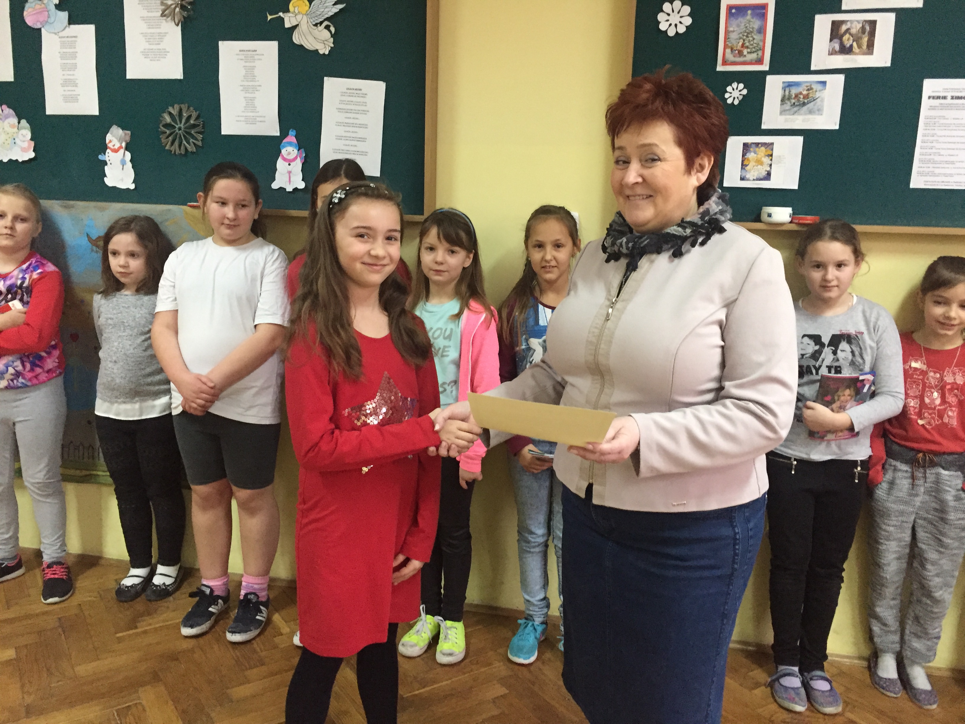 Pani dyrektor Maria Jędrejko gratulowała zwycięzcom i zachęcała do rozwijania talentów i podejmowania rywalizacji w konkursach.