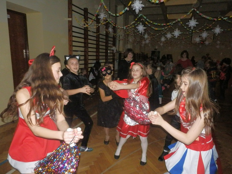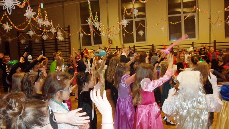 Tradycyjnie, tuż przed feriami odbyły się w naszej szkole zabawy karnawałowe. Towarzyszył im dobry humor, kolorowa sala i pokazy sztuczek iluzjonistycznych wodzireja, który też zabawę animował. Były korowody, kółeczka, tańce w parach i solo. Najmłodsi oczywiście nie zawiedli w swej pomysłowości, dzięki czemu na balu nie zabrakło księżniczek, rycerzy, piratów, Spiderman`ów, czarodziejek i cyganek. Zabawę uprzyjemnił pyszny poczęstunek przygotowany przez Radę Rodziców. Wszyscy bawili się znakomicie.