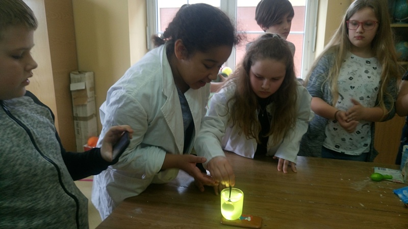 W ramach projektu ,,Być jak Ignacy” realizowaliśmy program na kółku przyrodniczym od listopada 2016 r. do 31 marca 2017 r. W czasie trwania projektu wykonywaliśmy różne doświadczenia, wzbogacając wiedzę i umiejętności uczniów z zakresu nauk przyrodniczych. W zajęciach brali udział uczniowie klasy V b i VI a. Wiedzą swoją dzielili się z innymi uczniami, podczas zajęć z przyrody oraz z dziećmi z klas pierwszych i drugich. Zakończenie projektu odbyło się na PWSTE w Jarosławiu na zajęciach prowadzonych przez doktor nauk fizycznych Anne Baran. Doświadczenia z ciekłym azotem. Następne zajęcia odbędą się z maju na specjalne zaproszenie Pani Doktor Anny Baran.
