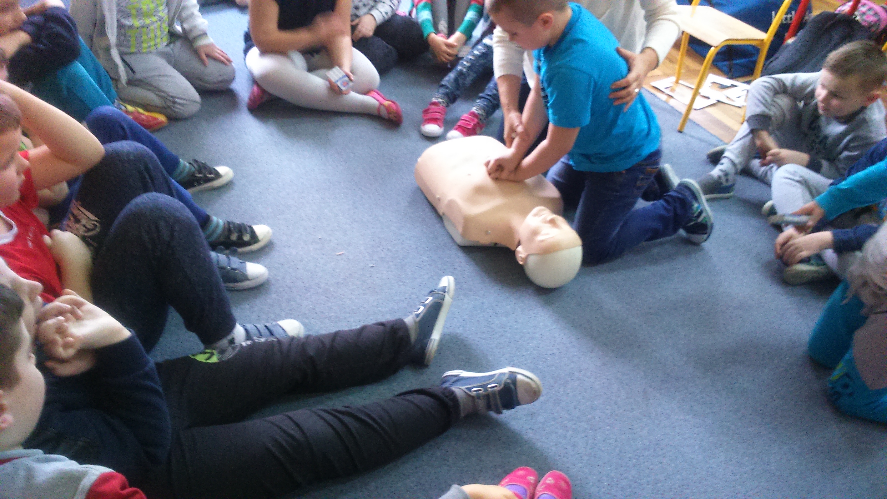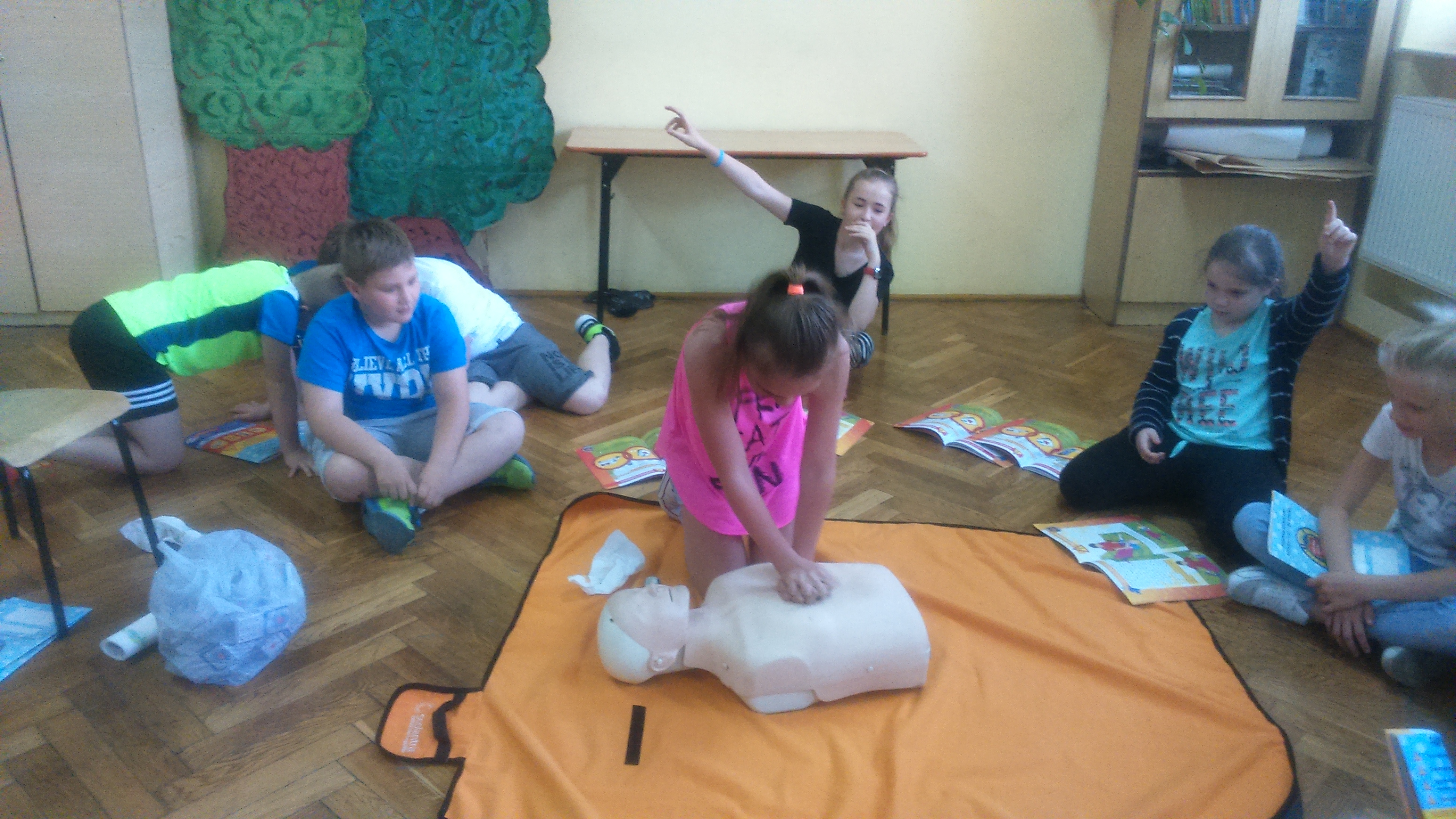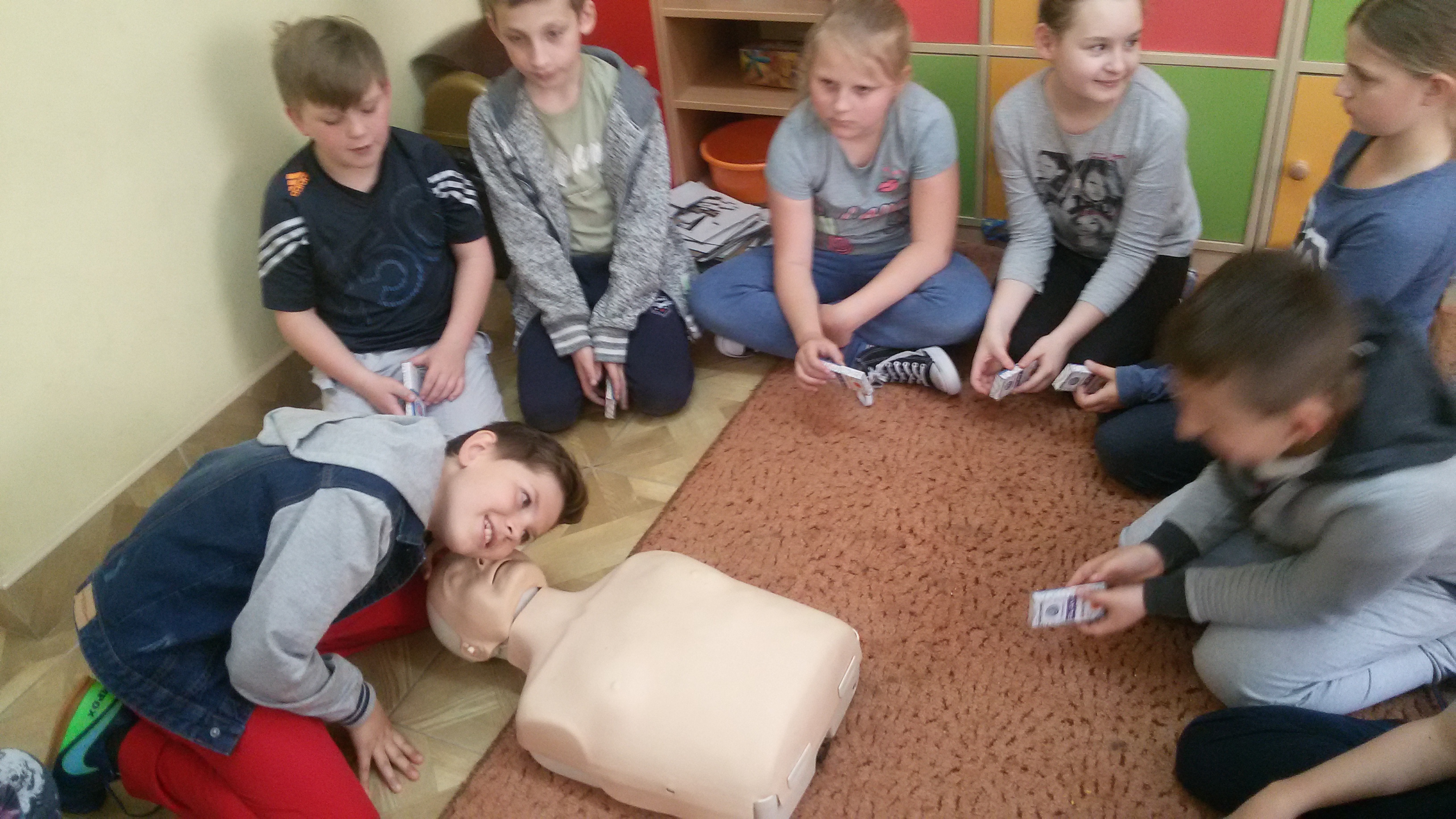 Od początku kwietnia do końca maja w naszej szkole odbywały się szkolenia z udzielania pierwszej pomocy przedmedycznej, prowadzone przez nauczycielki naszej szkoły p. Alę Suchą i p. Danutę Woźniak. Szkoleniem objęci zostali wszyscy uczniowie klas I,II, III i IV. Celem szkolenia było przypomnienie uczniom, jak zachować się w sytuacji, gdy osoba poszkodowana potrzebuje naszej pomocy. Uczniowie ćwiczyli jak oceniać swoje bezpieczeństwo, jak sprawdzać przytomność, jak sprawdzić oddech, jak wzywać pomoc oraz jak postępować w oczekiwaniu na nią.