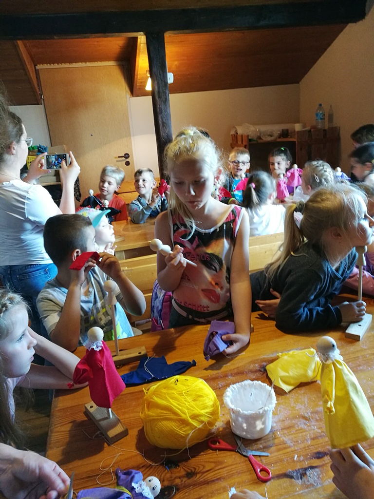 Ponadto, uczniowie zwiedzili miniaturową wioskę bajkowych domków bohaterów popularnych bajek i baśni oraz miały bliskie spotkanie z prawdziwą „Wiedźmą”. Uczestniczyli również w warsztatach artystycznych, których celem było stworzenie własnej lalki – kukiełki. Były to wybrane przez dzieci bajkowe postacie. Końcowym punktem programu wyprawy był obiad w Gospodzie u Wiedźmy oraz lody dla ochłody. Uczniowie, pełni wrażeń, z pamiątkami i z uśmiechem na ustach, szczęśliwie wrócili do domu. Zapraszamy do foto – relacji.