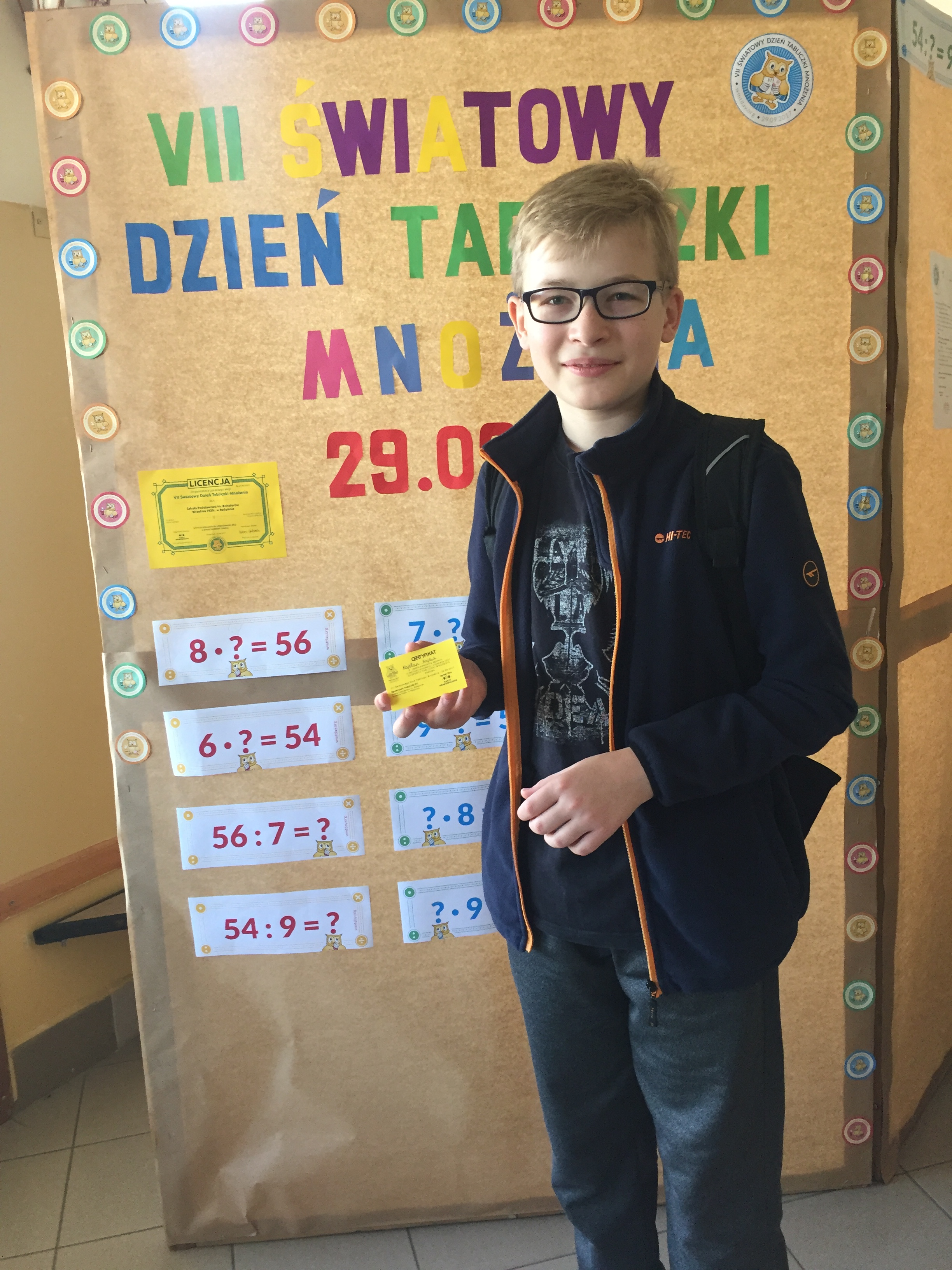 w poniedziałek 25 września 2017r. Szkoła została ozdobiona plakatami, gazetkami, wywieszono list do rodziców oraz licencję organizatora lokalnego. Gratulujemy wszystkim Ekspertom Tabliczki Mnożenia i zapraszamy za rok J