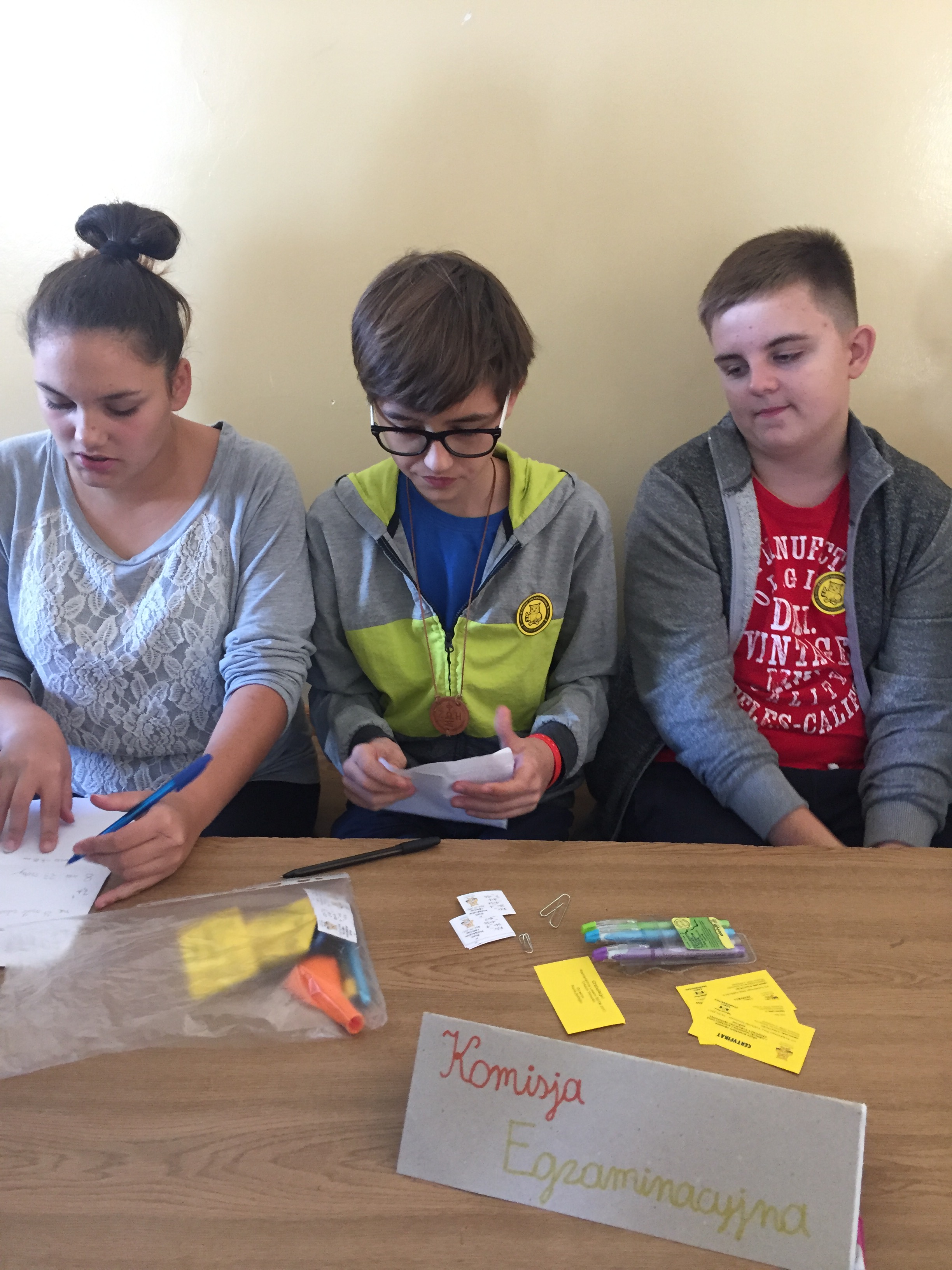 O godzinie 9.00 uczniowie szkoły zebrali się na apelu. Obchody rozpoczęła Pani Dyrektor Maria Jędrejko życząc wszystkim uczniom sukcesów i dobrej zabawy. Następnie szkolny koordynator akcji przedstawił zasady przebiegu egzaminów oraz komisje egzaminacyjne w składzie: