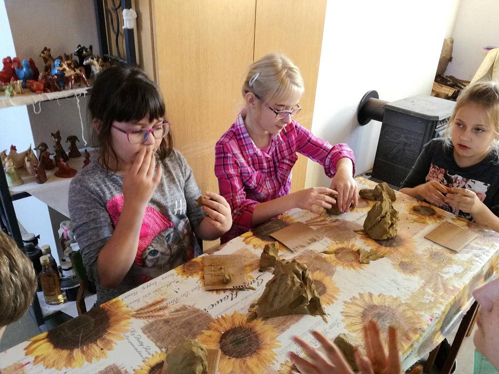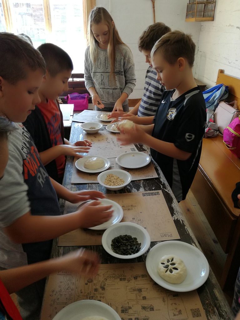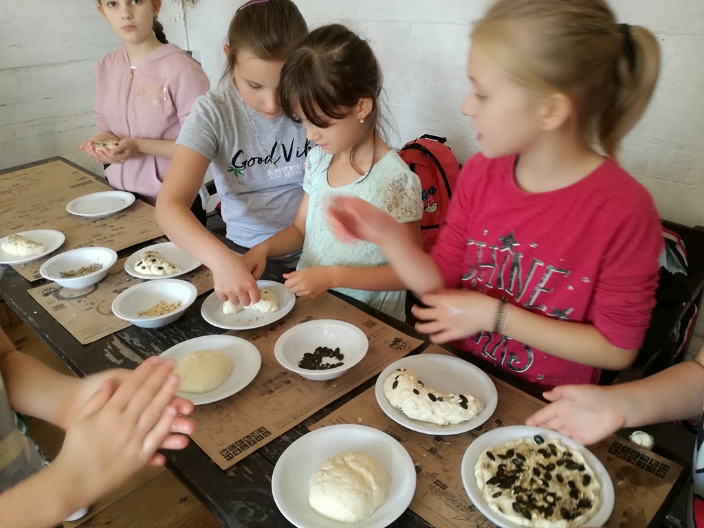 Wytwory swojej pracy; gliniane figurki, wykute tabliczki i malowane obrazy na szkle uczniowie zabrali ze sobą na pamiątkę. Ponad to każdy uczestnik warsztatów miał możliwość wykonania własnego, niepowtarzalnego chlebka i zabrania go do domu.