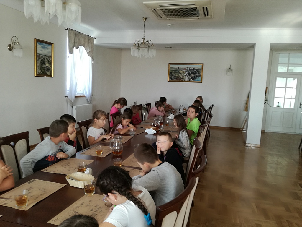 Na koniec uczestników wycieczki uraczono pierogami. Dzieci bawiły się wyśmienicie, zadowolone i pełne wrażeń z ociąganiem żegnały się z Kresową Osadą. Był to dzień pełen radości oraz niezapomnianych przeżyć.