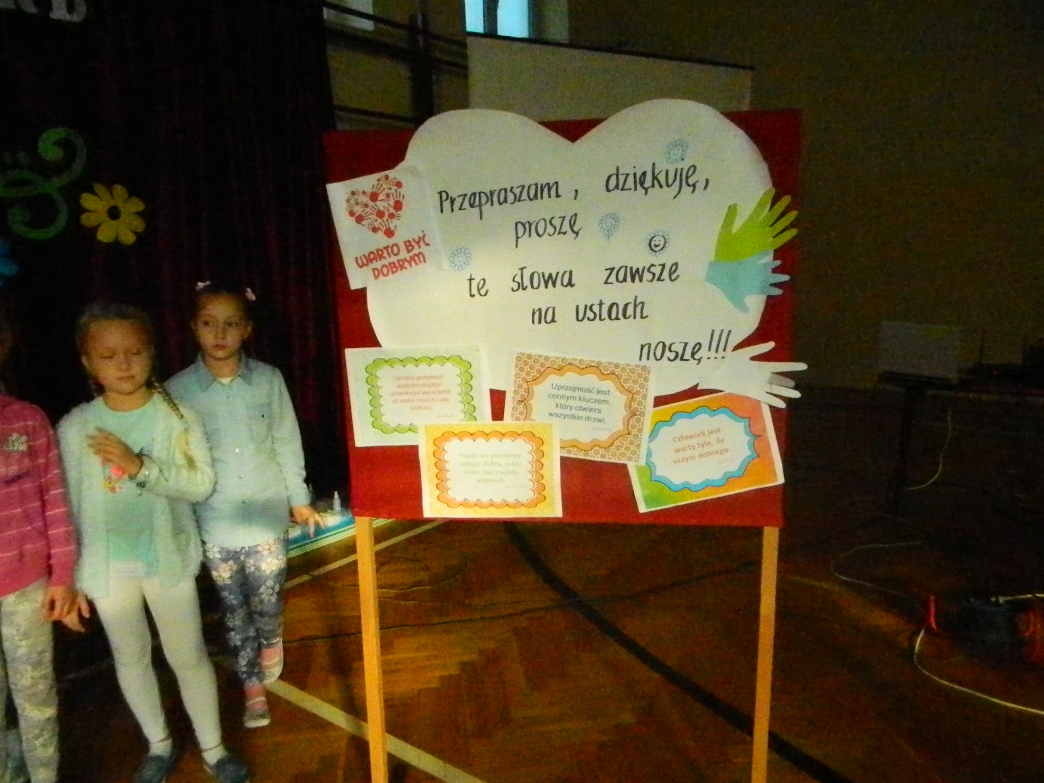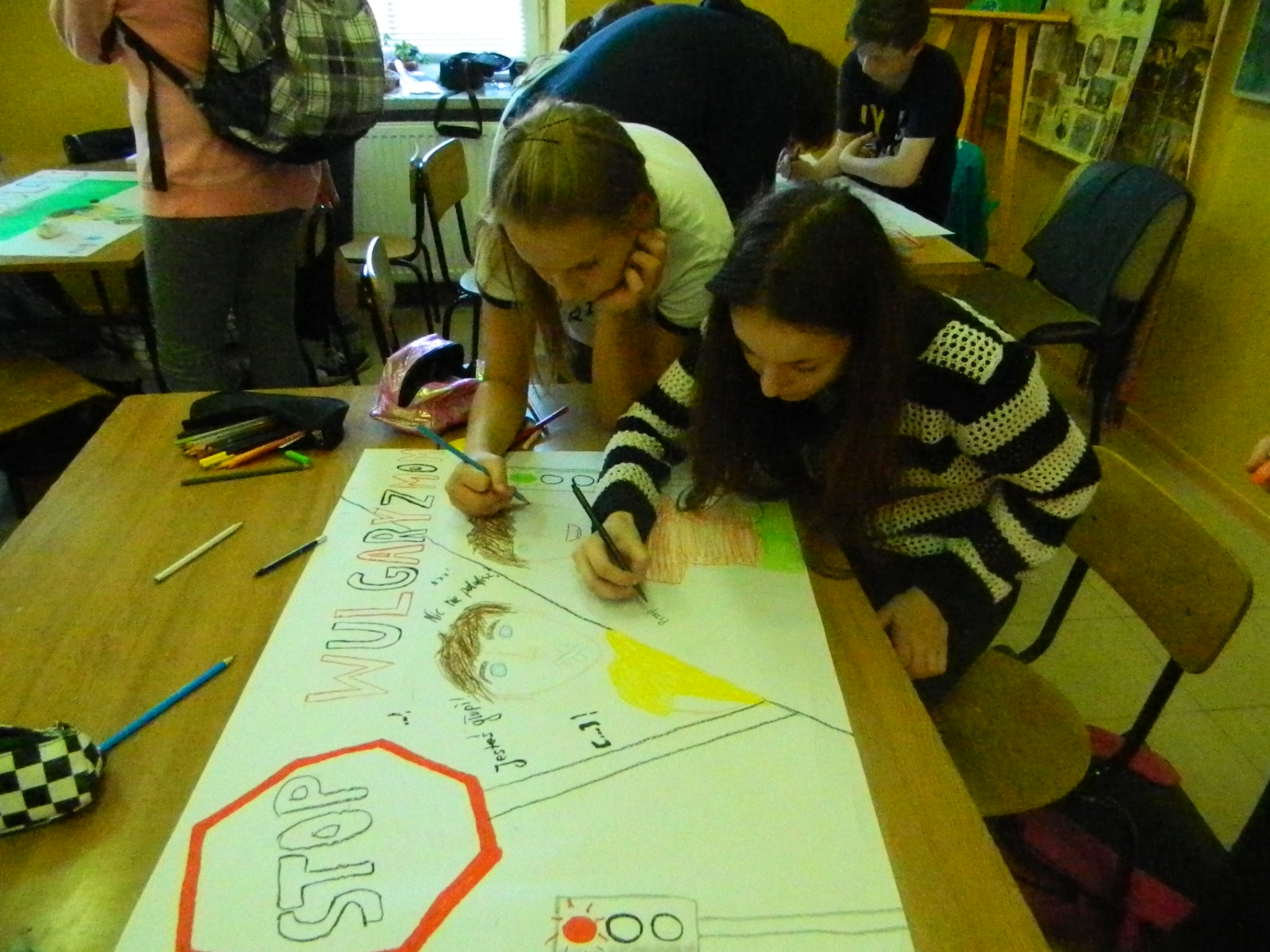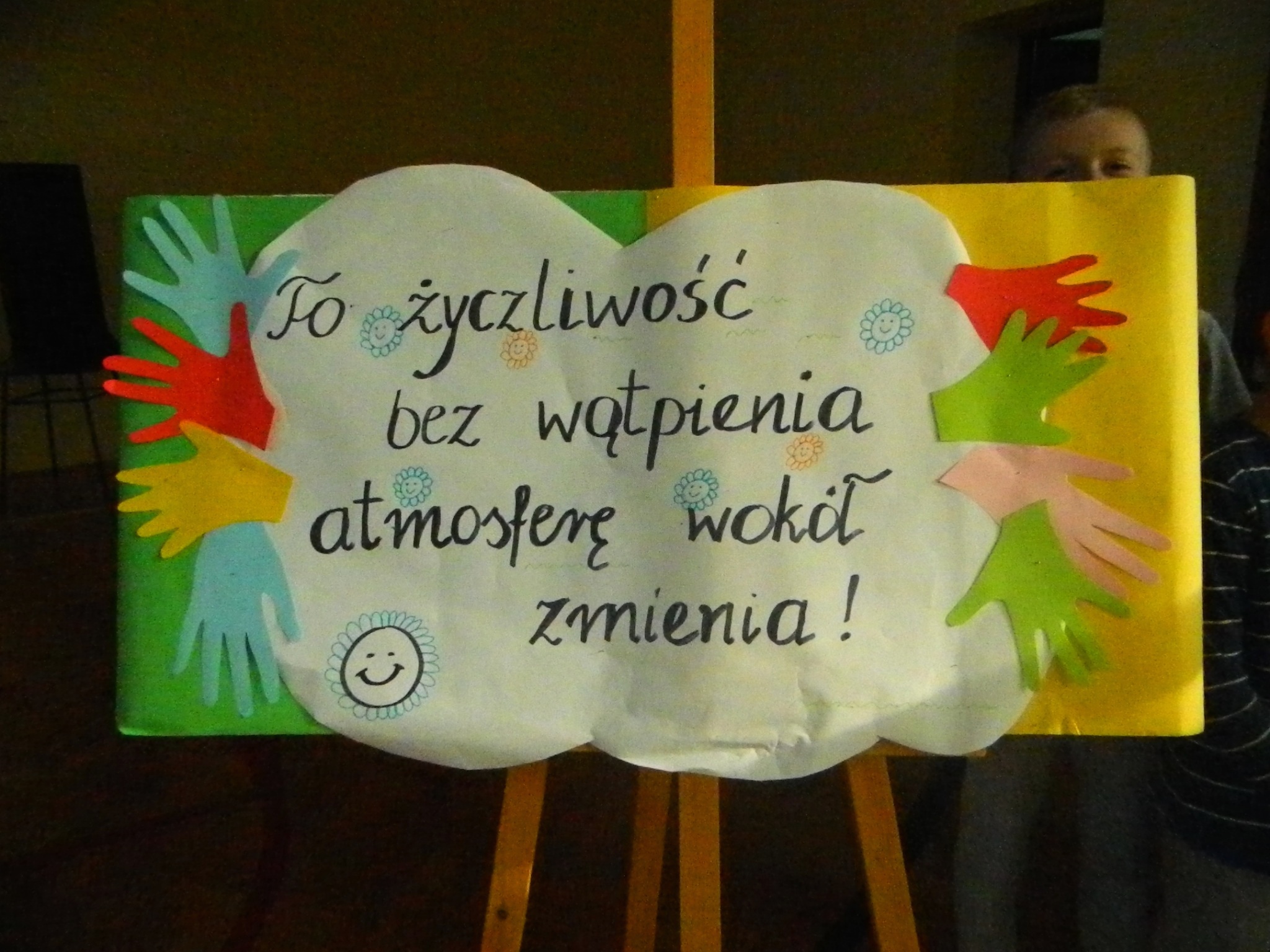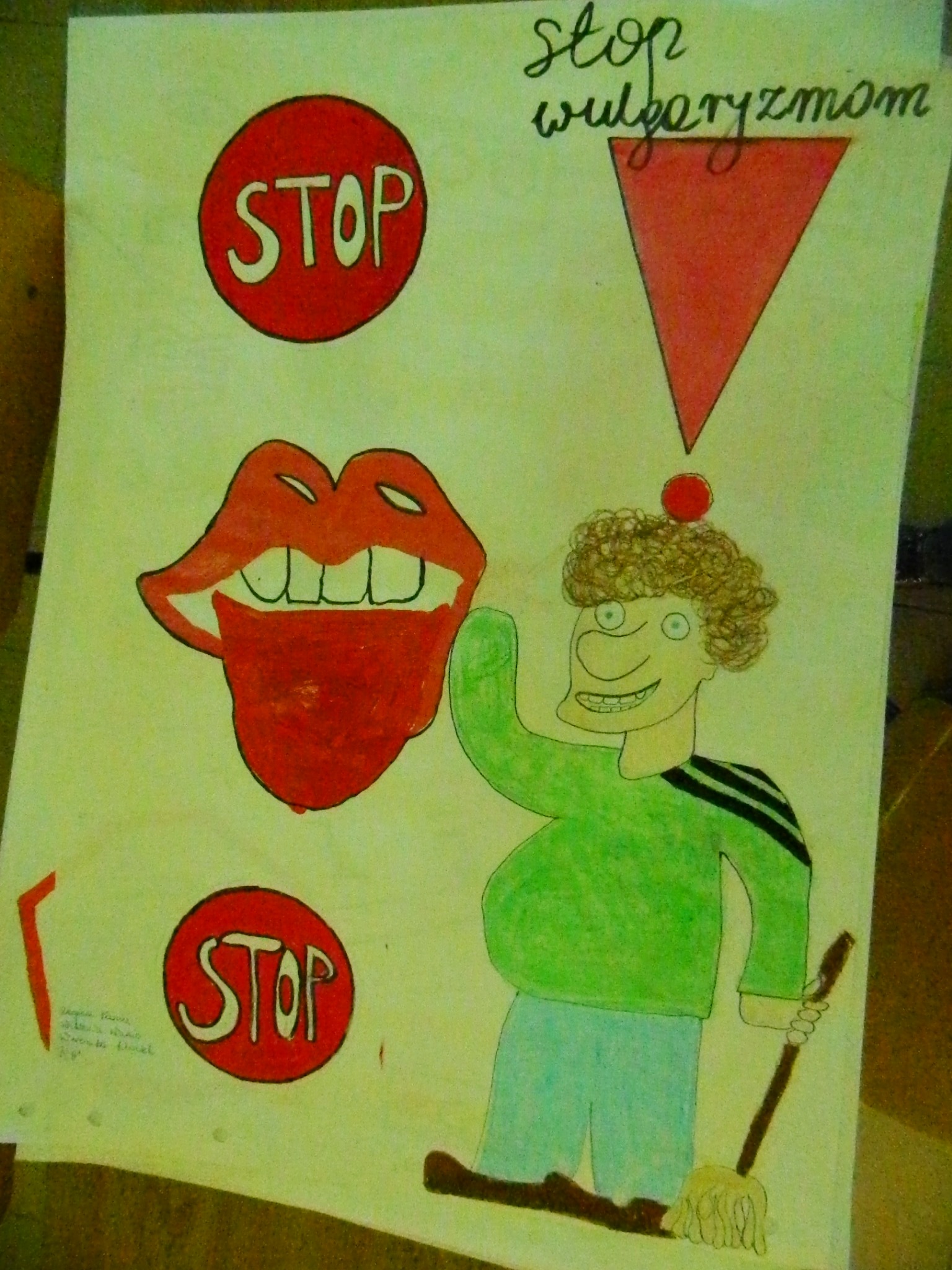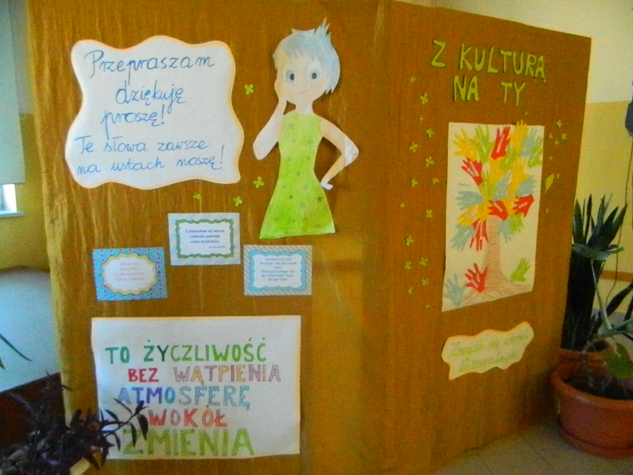 Klasy piąte i szóste i siódme tworzyły plakaty ilustrujące następujące hasła: Mój wygląd świadczy o mnie, Moje zachowanie świadczy o mnie, Stop wulgaryzmom, Znajdź się wśród kulturalnych. Konkurs wygrała klasa VII a. Dzieci młodsze rysowały ilustracje w czasie zajęć świetlicowych.