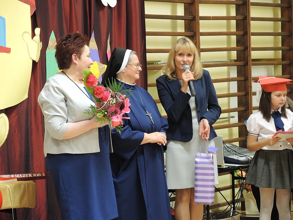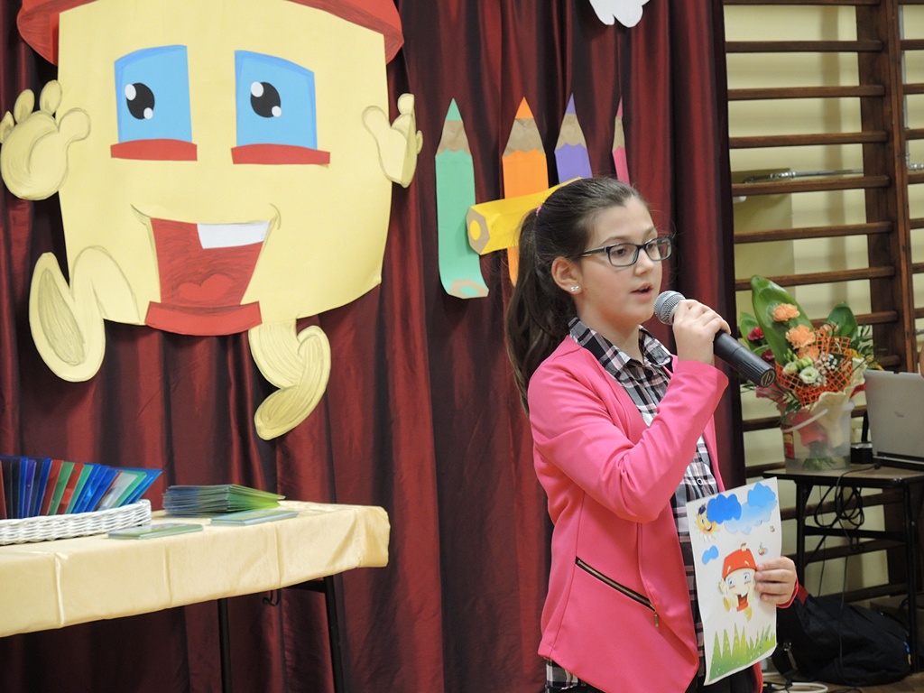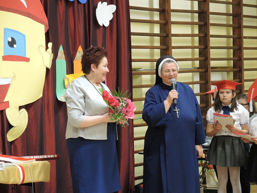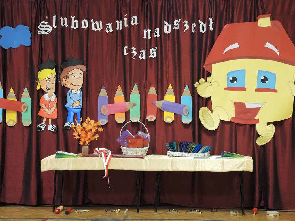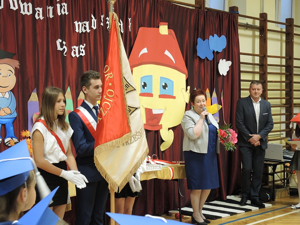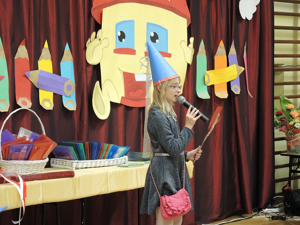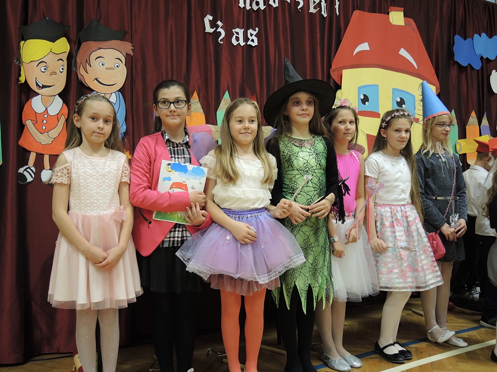 Dnia 24 października 2017 r. w naszej szkole odbyła się uroczystość PASOWANIA NA UCZNIA SZKOŁY PODSTAWOWEJ. Punktualnie o godz. 16.00 pod okiem wychowawców p. A. Suchej i D. Woźniak do sali gimnastycznej wkroczyli pierwszoklasiści w galowych strojach i kolorowych biretach. Na uroczystość przybyli zaproszeni goście: s. E. Wilk – dyrektor Przedszkola Parafialnego, p. M. Trojnar – dyrektor Przedszkola Samorządowego oraz p. A. Marciak – przewodniczący Rady Rodziców i p. B. Rajzer z-ca przewodniczącego Rady Rodziców. Pani Dyrektor Maria Jędrejko serdecznie powitała wszystkich, a następnie oddała głos dzieciom – one to bowiem były bohaterami tego spotkania. Pierwszaki wraz z uczniami klas starszych przygotowali program artystyczny pod okiem swoich wychowawczyń.