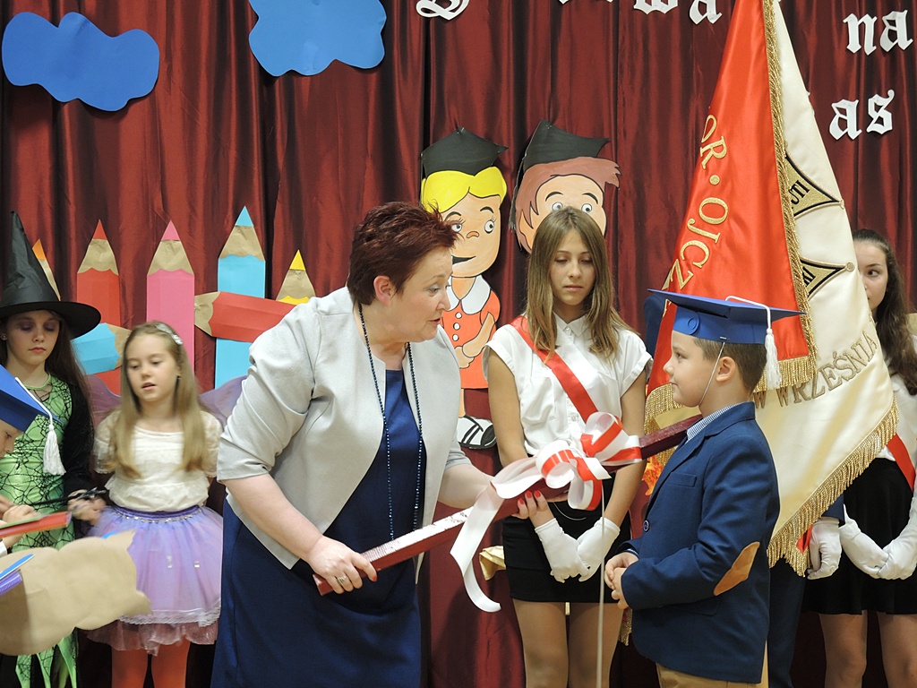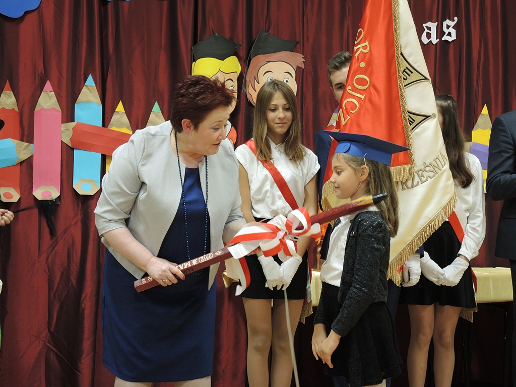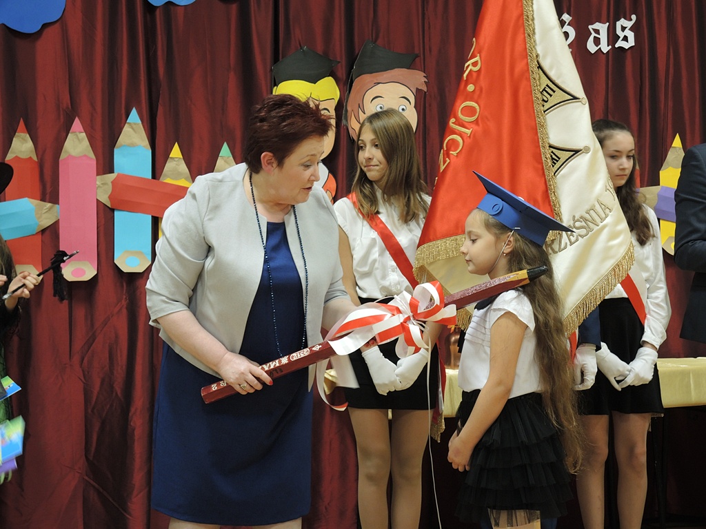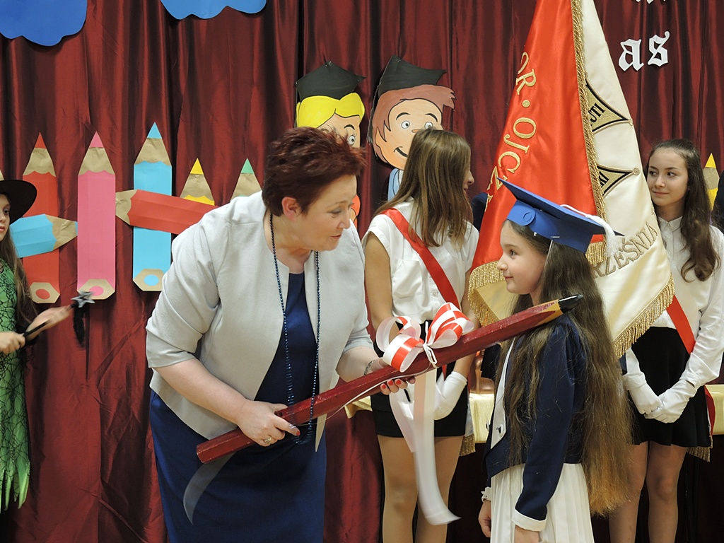Po ślubowaniu każdy uczeń był osobiście pasowany przez Panią Dyrektor „zaczarowanym ołówkiem”. Od tego momentu pierwszaki stały się prawowitymi uczniami Szkoły Podstawowej im. Bohaterów Września 1939 r. w Radymnie. Był to niezwykły moment. Na pamiątkę tego wydarzenia dzieci otrzymały dyplomy, długopisy, notesiki, kalendarze i plany lekcji ufundowane przez Radę Rodziców. W dalszej części uroczystości głos zabrali zaproszeni goście składając pierwszakom gratulacje i serdeczne życzenia. Po pasowaniu była chwila dla fotoreporterów, czyli rodziców i najbliższych, którzy to niezwykłe wydarzenie chcieli upamiętnić.