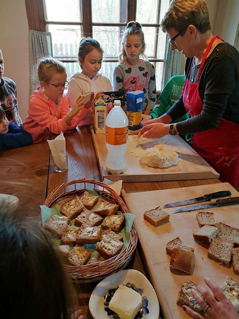 W Kolbuszowej dzieci poznawały kulturę Lasowiaków i Rzeszowiaków podczas zwiedzania obiektów małej i dużej architektury drewnianej z przełomu XIX i XX wieku, takich jak: szkoła, kościół, wiatraki, młyn, chaty, i inne budynki gospodarskie. Ponadto uczestniczyły w warsztatach pt. „Ziarnko do ziarnka – znaczenie chleba w tradycji”. Podczas lekcji w wiejskiej zagrodzie, uczniowie poznali prace polowe i gospodarskie, narzędzia i sprzęty służące do obróbki zboża, a także rozróżniali różne jego gatunki. Dowiedzieli się o ciekawych zwyczajach związanych z wypiekiem chleba. Na koniec upiekli tradycyjny przysmak – proziaki, a także delektowali się smakiem wiejskiego chleba z masłem.