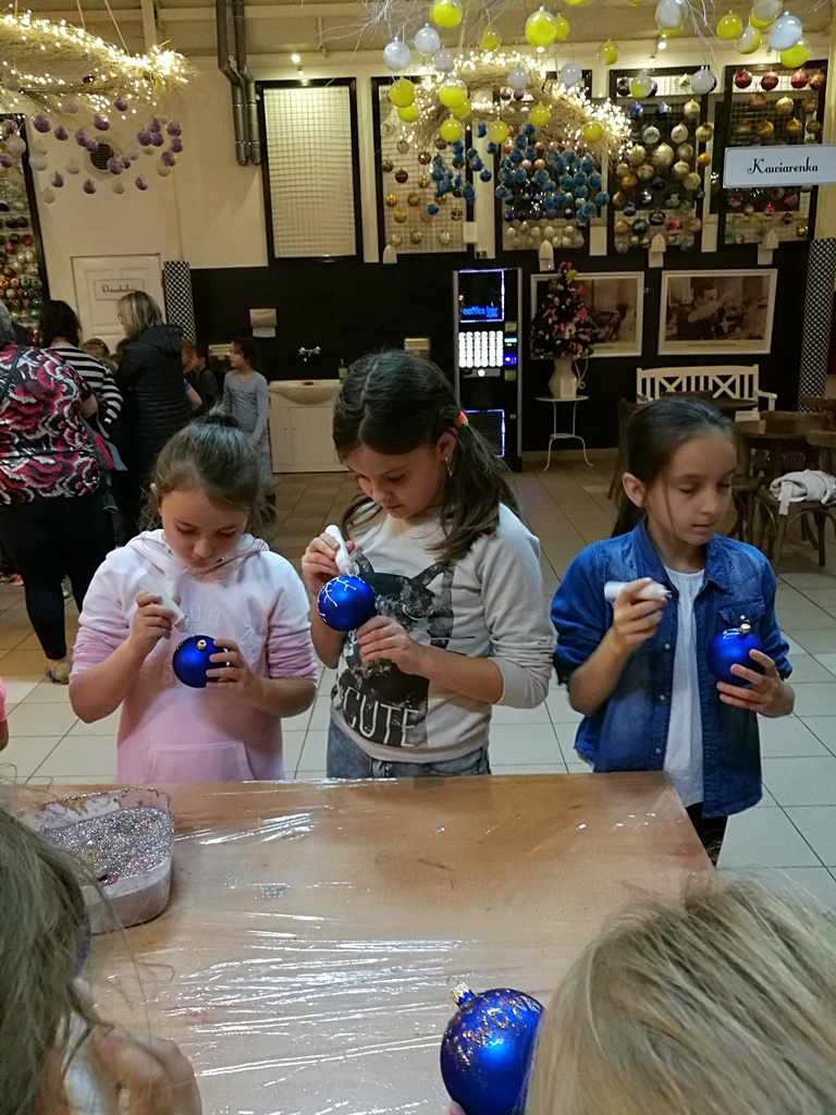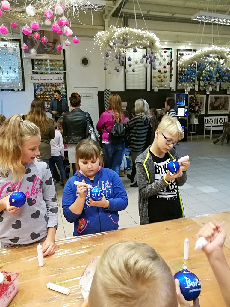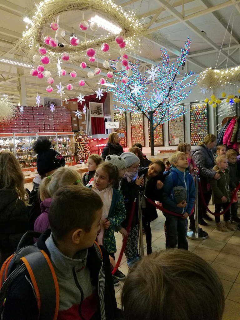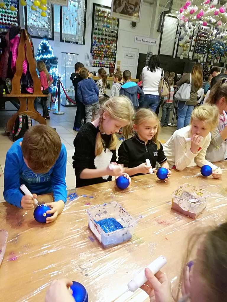 W Nowej Dębie, uczniowie zwiedzali Muzeum Bombki Choinkowej, śledzili proces powstawania różnych ozdób choinkowych (obróbkę termiczną szkła, srebrzenie i ręczne malowanie i zdobienie). Dzieci oglądały tysiące ręcznie wyprodukowanych bombek, setki niesamowitych eksponatów w galeriach. Na zwiedzających czekał przewodnik, który prezentował stanowiska z choinkami i ozdobami bożonarodzeniowymi z różnych części świata i epok. Niezapomniane wrażenia zapewniły warsztaty artystyczne, podczas których uczniowie samodzielnie malowali i zdobili bombki brokatem wg własnego pomysłu.