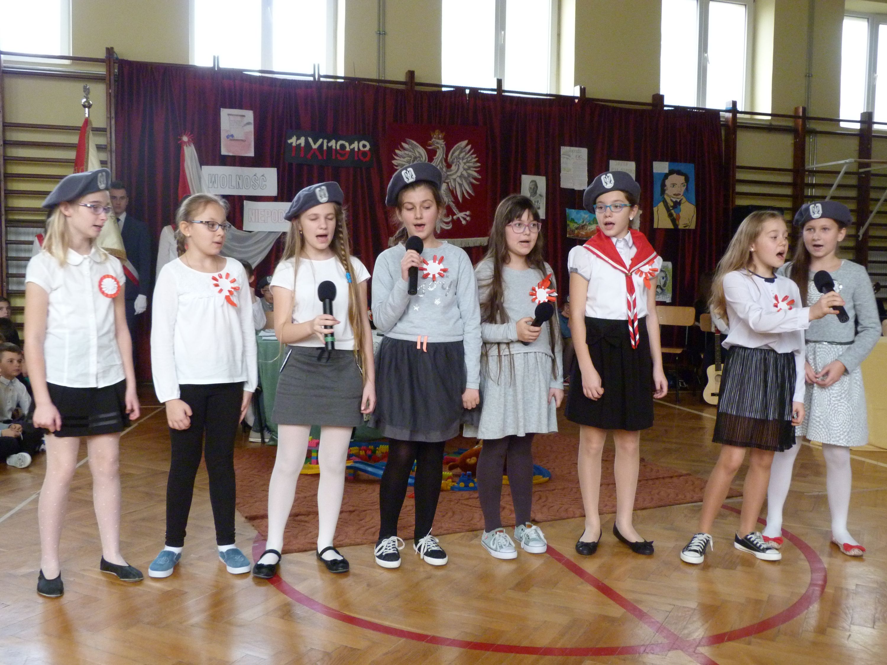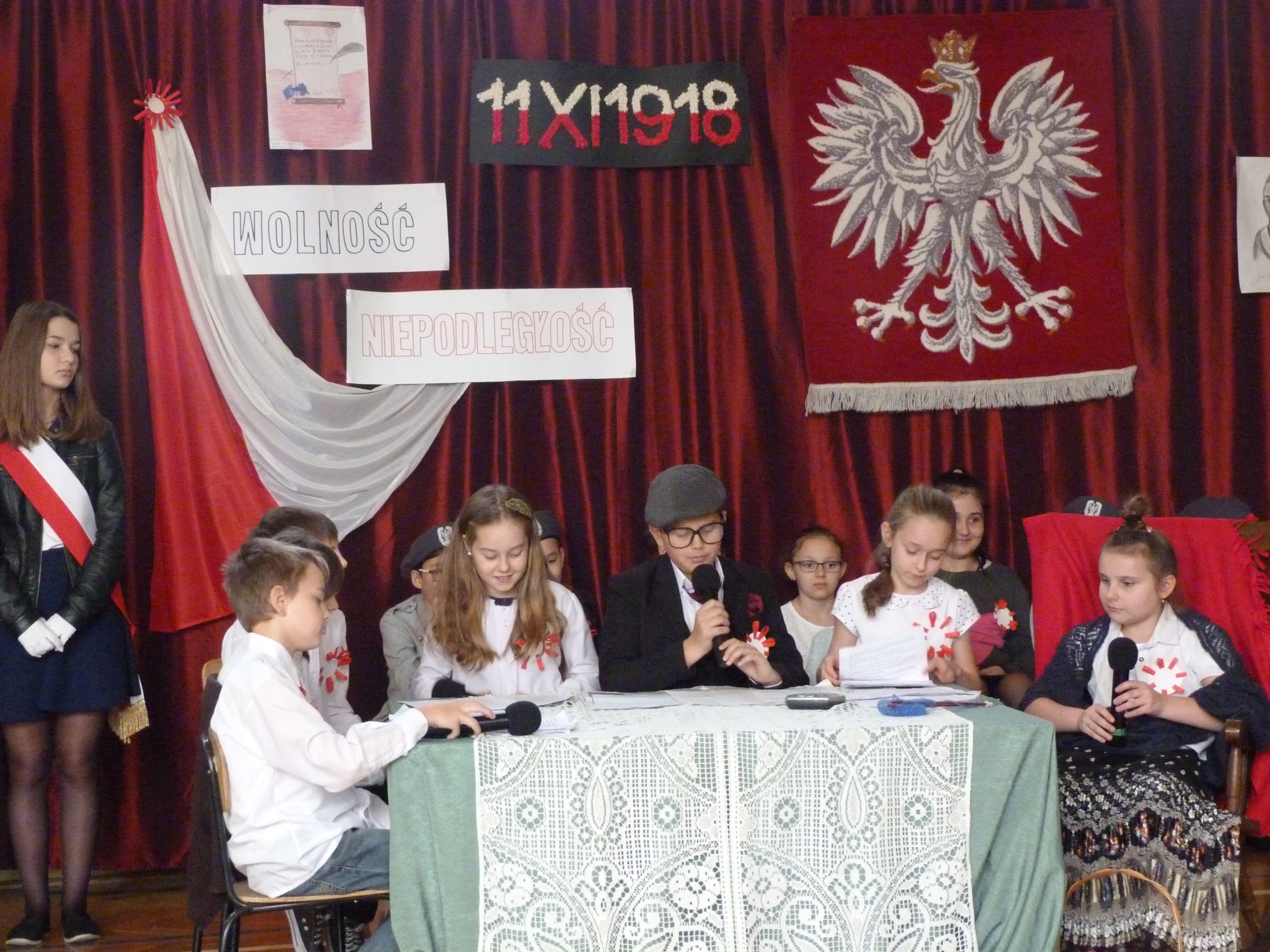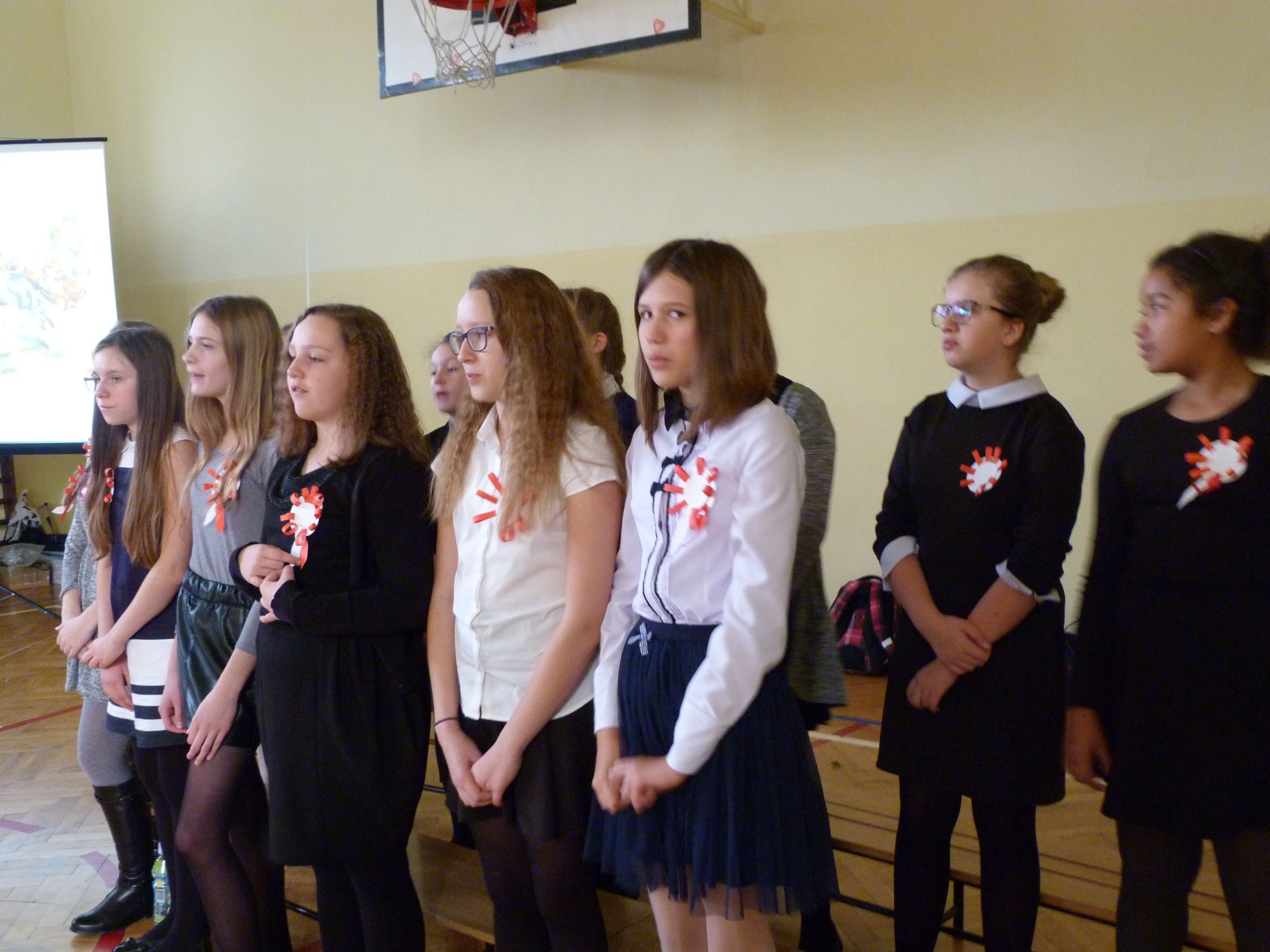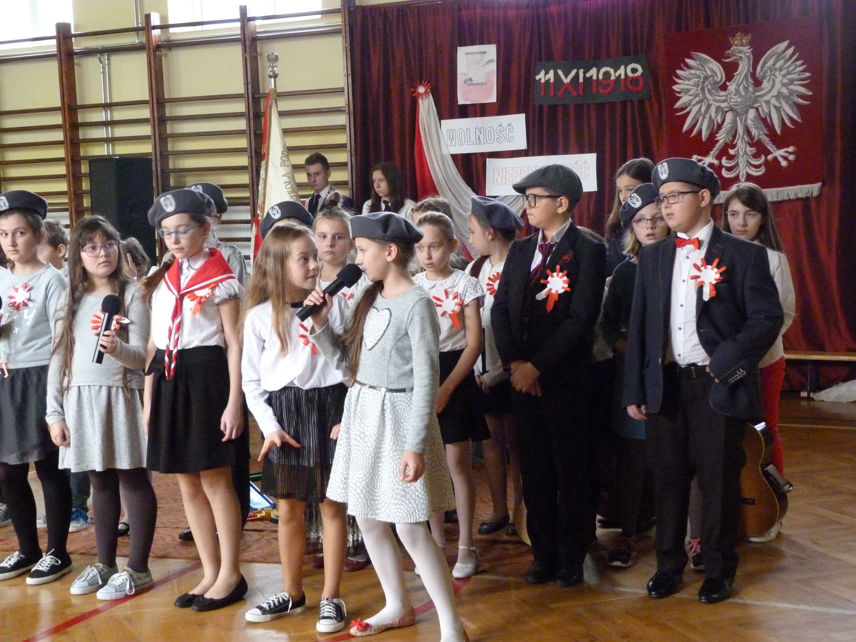 W poniedziałek 13 listopada, po krótkim przemówieniu Pani dyrektor Marii Jędrejko nawiązującym do tradycji patriotycznych naszej Ojczyzny, uczniowie obejrzeli program artystyczny, który został specjalnie przygotowany na tę okazję. Przypominał on o podniosłości najważniejszego narodowego święta oraz los Polski podczas 123 letniej niewoli i ogromną wiarę Polaków w odzyskanie Niepodległości. Pomogła w tym prezentacja multimedialna oraz piosenki m.in. „Niepodległość”, „Wolność”, „Boże coś Polskę” i hymn „Mazurek Dąbrowskiego”, które stworzyły niezwykły nastrój uroczystości.