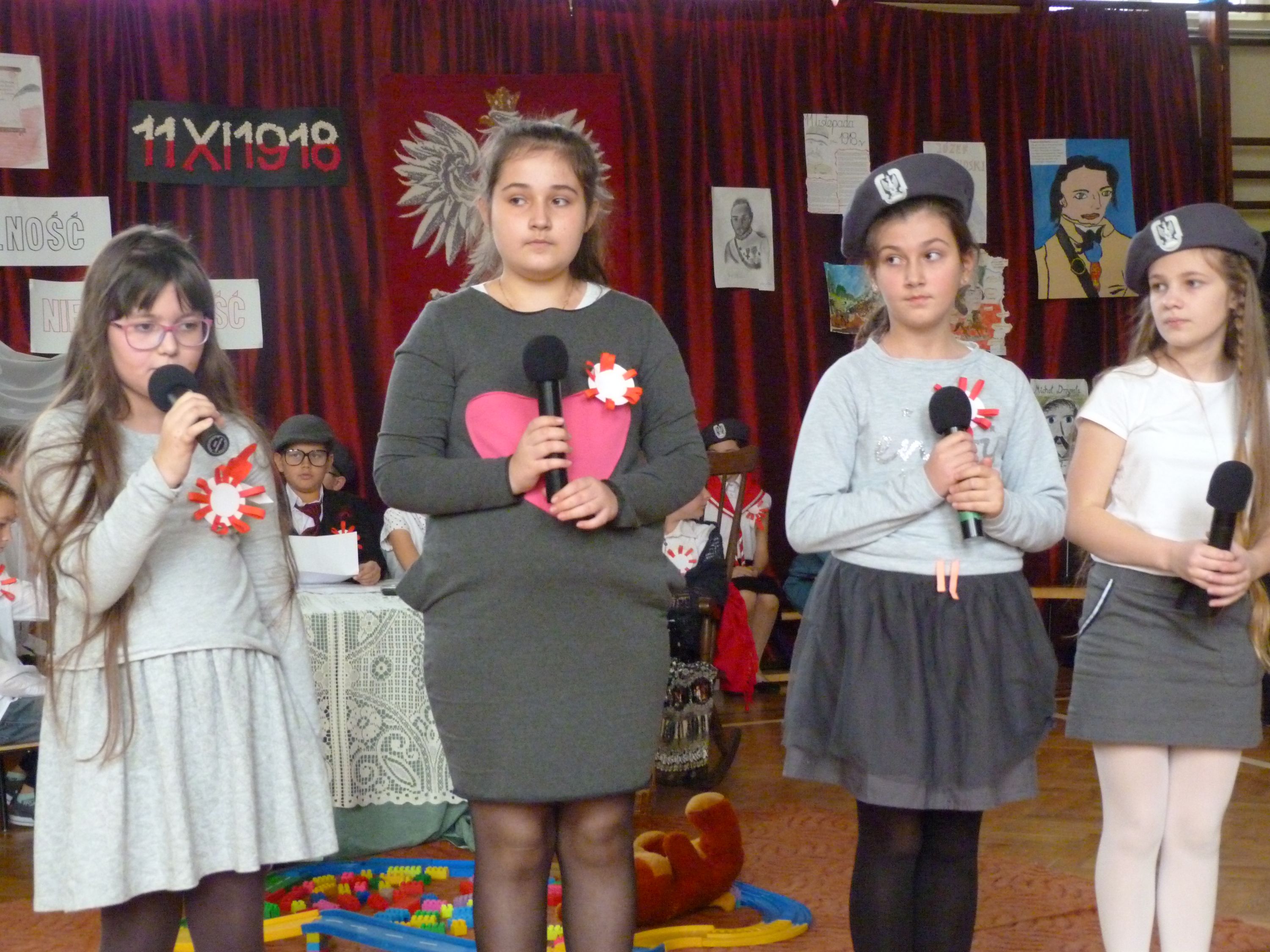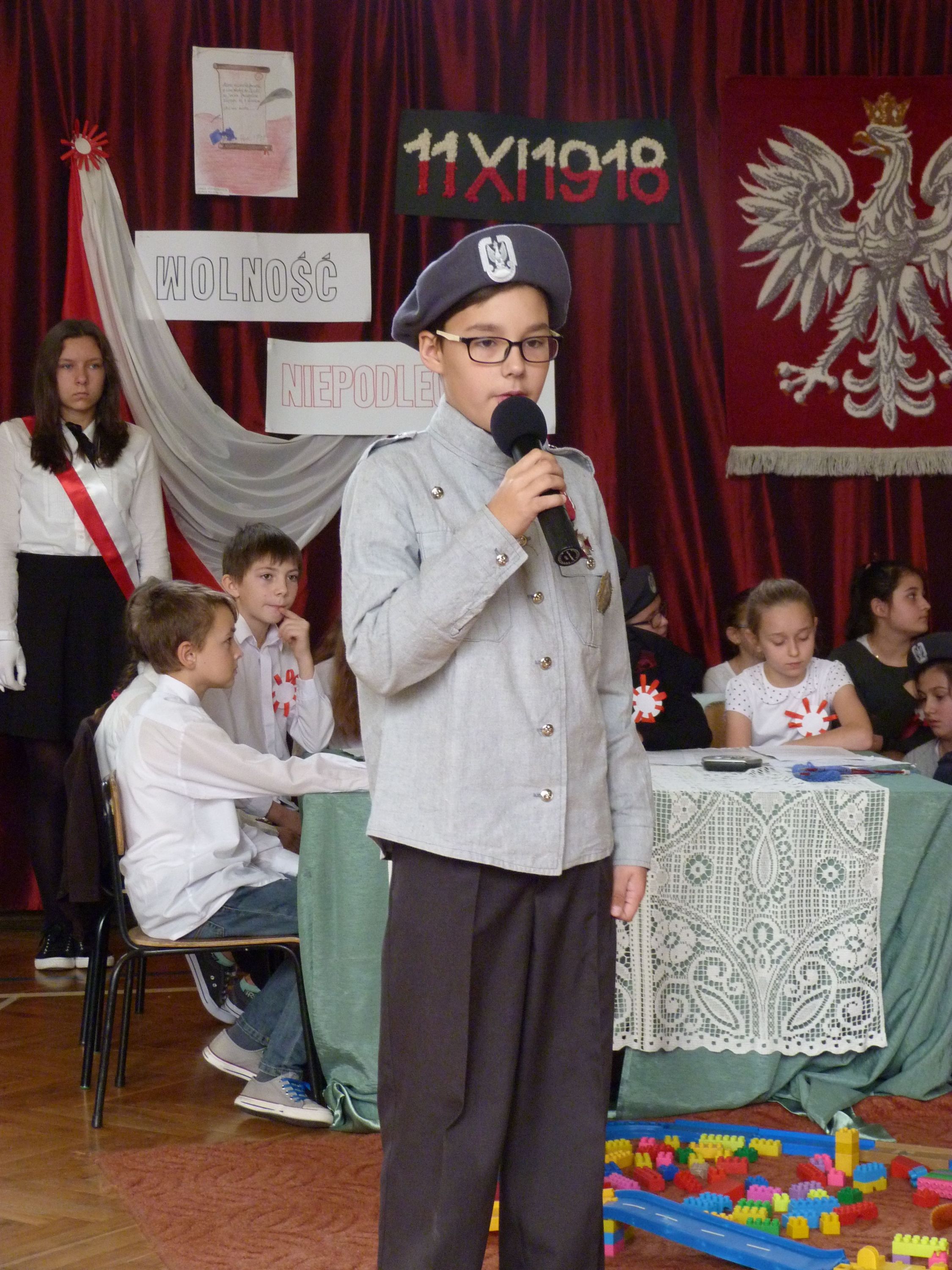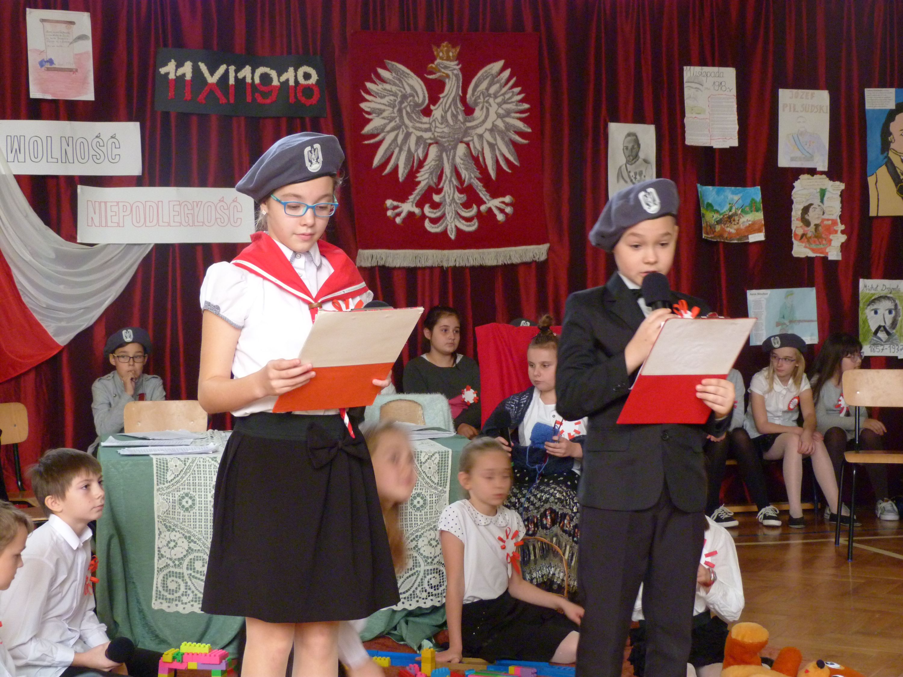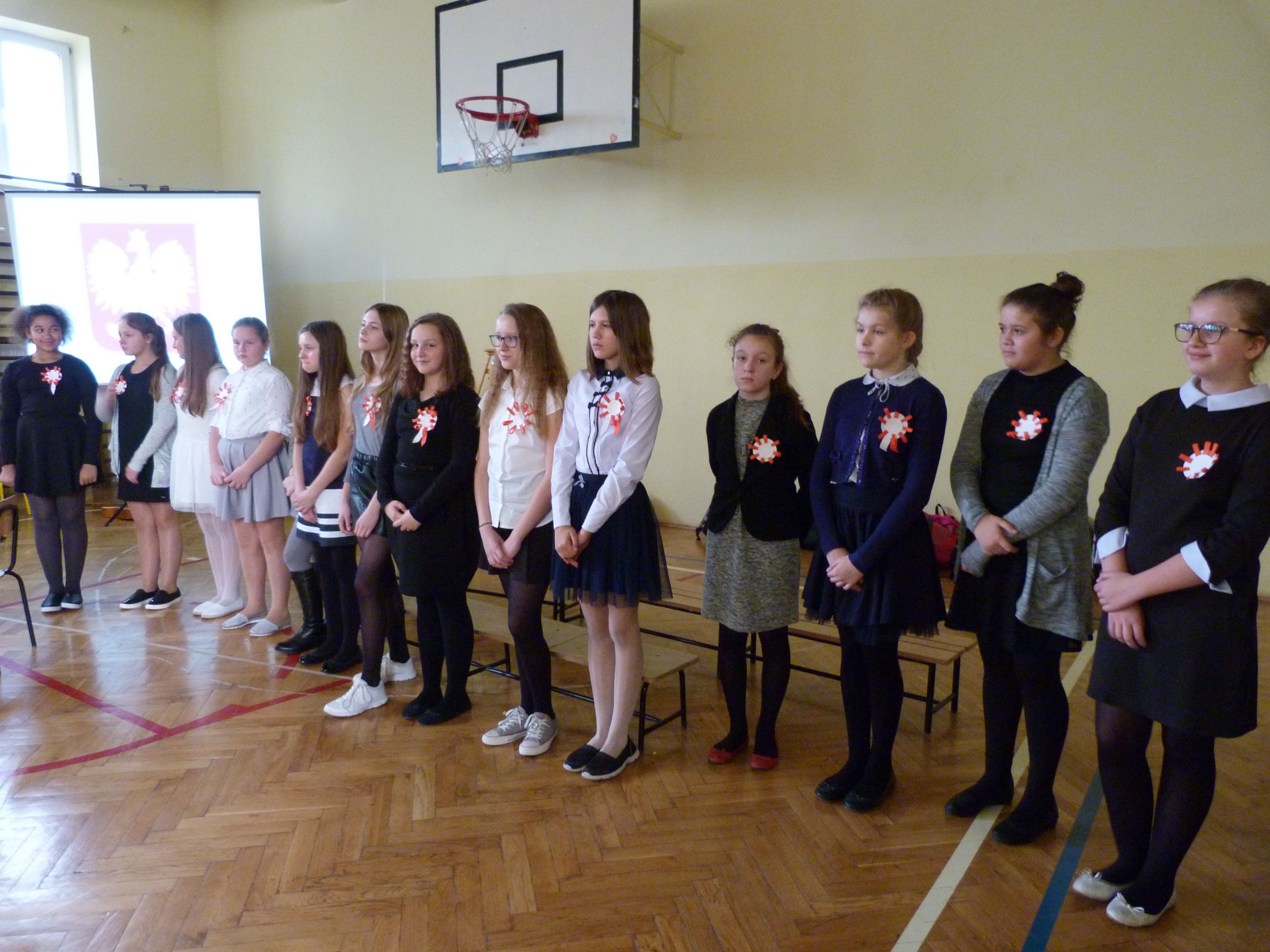 W poniedziałek 13 listopada, po krótkim przemówieniu Pani dyrektor Marii Jędrejko nawiązującym do tradycji patriotycznych naszej Ojczyzny, uczniowie obejrzeli program artystyczny, który został specjalnie przygotowany na tę okazję. Przypominał on o podniosłości najważniejszego narodowego święta oraz los Polski podczas 123 letniej niewoli i ogromną wiarę Polaków w odzyskanie Niepodległości. Pomogła w tym prezentacja multimedialna oraz piosenki m.in. „Niepodległość”, „Wolność”, „Boże coś Polskę” i hymn „Mazurek Dąbrowskiego”, które stworzyły niezwykły nastrój uroczystości.