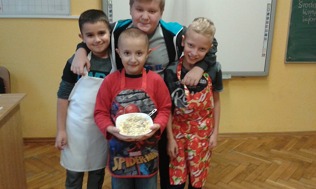 Dlatego też po raz kolejny w dniu 8 listopada 2017 r. uczniowie klas I-III włączyli się do ogólnopolskiej akcji edukacyjnej „Śniadanie daje moc” organizowanej w ramach Europejskiego Dnia Zdrowego Jedzenia i Gotowania. Akcja miała na celu zwiększanie świadomości nt. zdrowego odżywiania i roli śniadania w diecie dziecka, a także przyczynianie się do obniżania poziomu niedożywienia dzieci w Polsce – poprzez edukację oraz promocję prawidłowego żywienia.