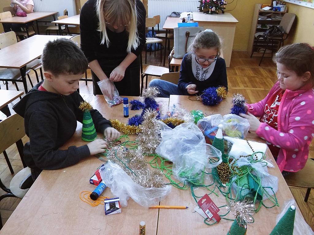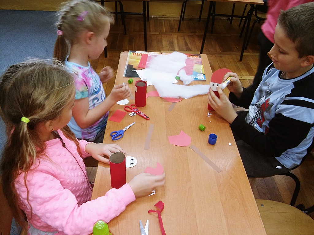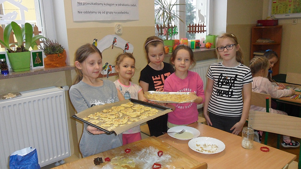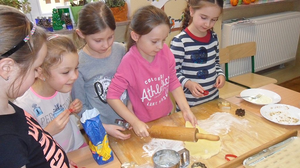 Miesiąc grudzień to czas przedświątecznych przygotowań, które miały też miejsce na zajęciach w świetlicy. Dzieci wykonały liczne prace, zarówno z papieru, poprzez modelowanie ozdób świątecznych w masie solnej, a na pieczeniu ciasteczek kończąc. Słuchały też adwentowych opowieści i uczyły się śpiewać kolędy.