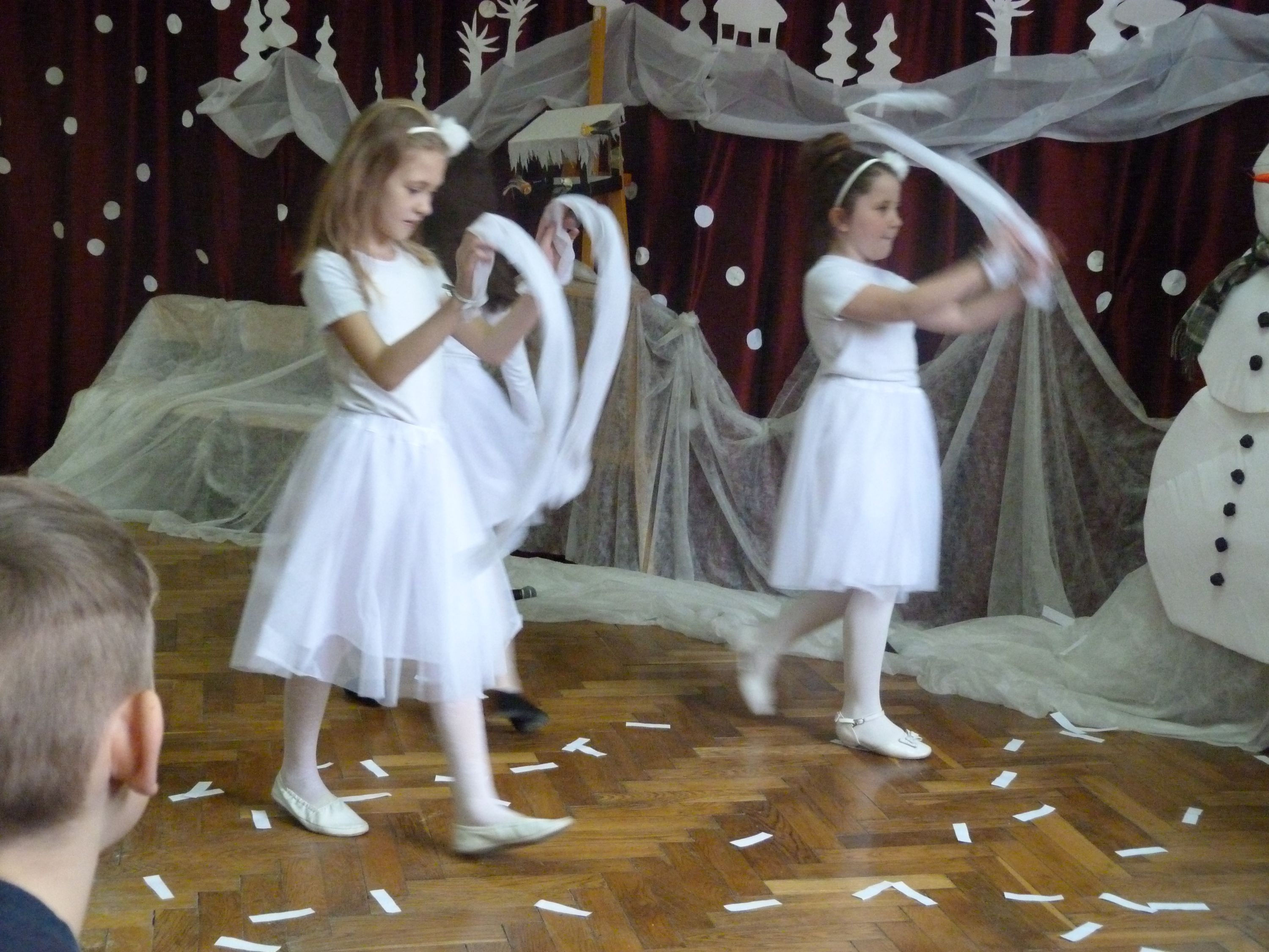 Scenografia, rekwizyty, kostiumy stworzyły baśniowy klimat, w którym piosenki, układy choreograficzne, taniec śnieżynek i gra aktorska wprowadzały widza w radosny, zimowy nastrój.