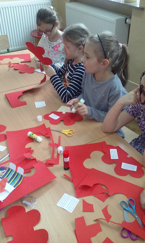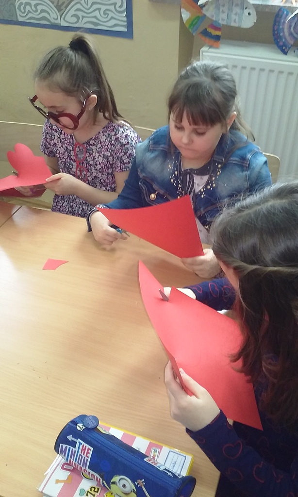 Tego dnia w świetlicy funkcjonowała poczta, dzięki której można było przekazać własnoręcznie wykonaną walentynkę swojej sympatii. Dzieci poznały historię tego święta. Przygotowały również kolorowe laurki dla swoich bliskich. Popołudnie upłynęło pod znakiem dobrej zabawy.