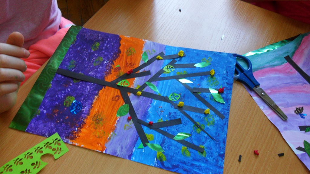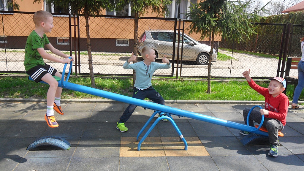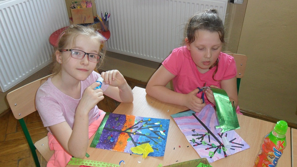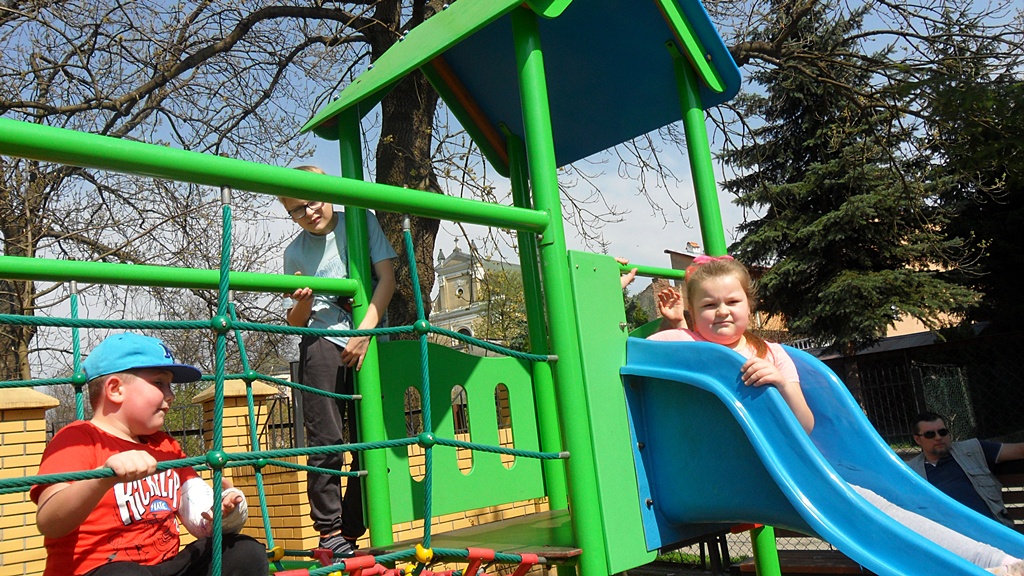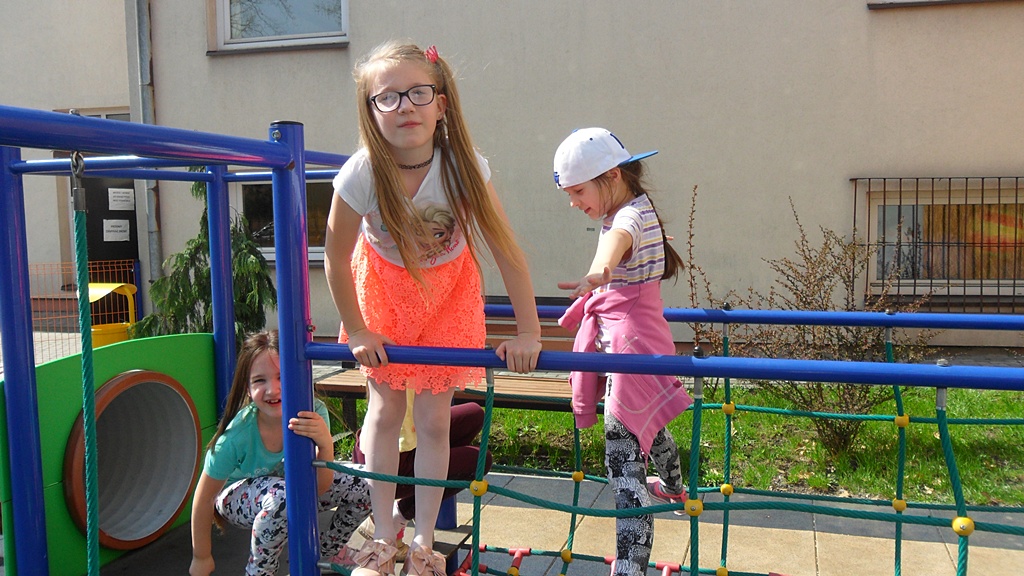 Wiosna tego roku rozwinęła się niezwykle szybko, więc większość zajęć świetlicowych w kwietniu odbywała się na świeżym powietrzu. Wielką atrakcją cieszył się plac zabaw i swobodne zabawy dzieci. Korzystaliśmy z ciepłej, słonecznej aury. Zajęciom plastycznym towarzyszyła także wiosenna tematyka inspirowana obserwacją przyrody.