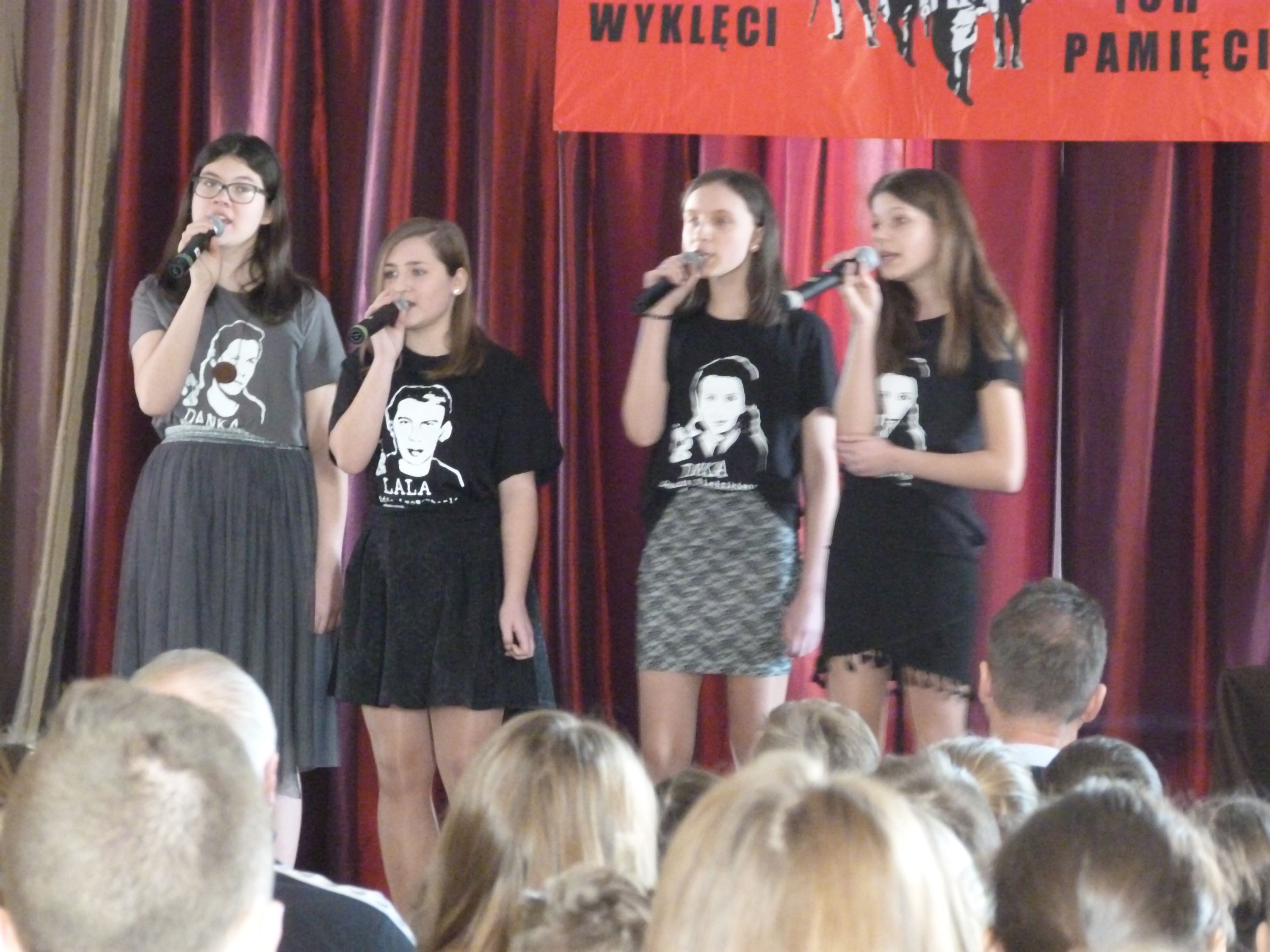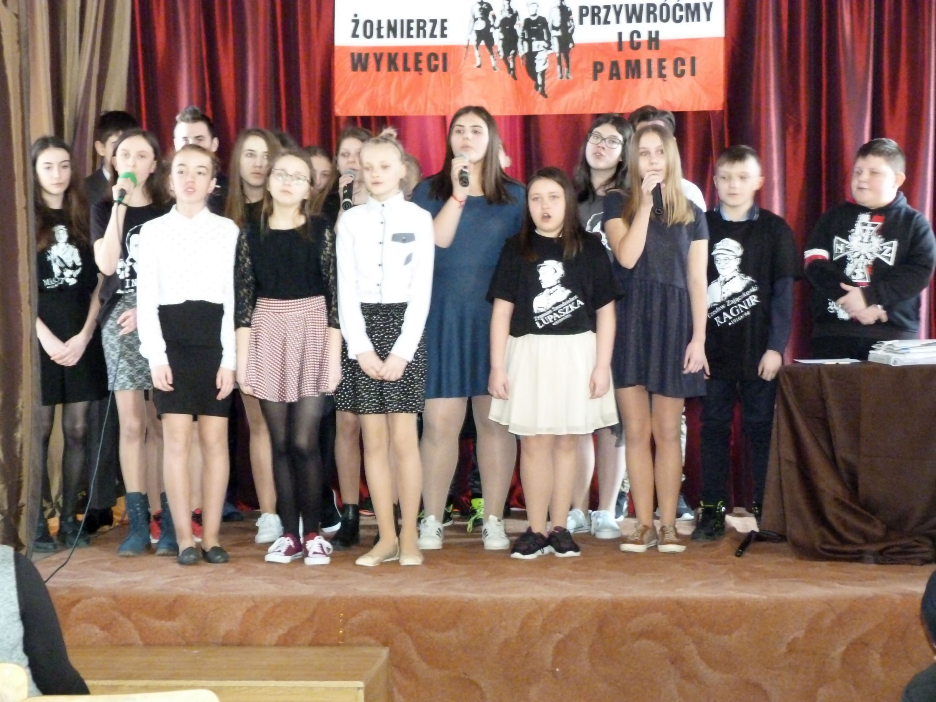Młodzież szkoły podstawowej zaprezentowała program artystyczny pt. „Historie zagubione”, podczas którego starała się ukazać tragizm, determinację oraz niezłomność Polaków w walce o prawdę i niepodległość. Wiersze, piosenki, scena przesłuchania skłoniły do refleksji, a także uświadomiły, że nasza wolność to ofiara Ich życia.