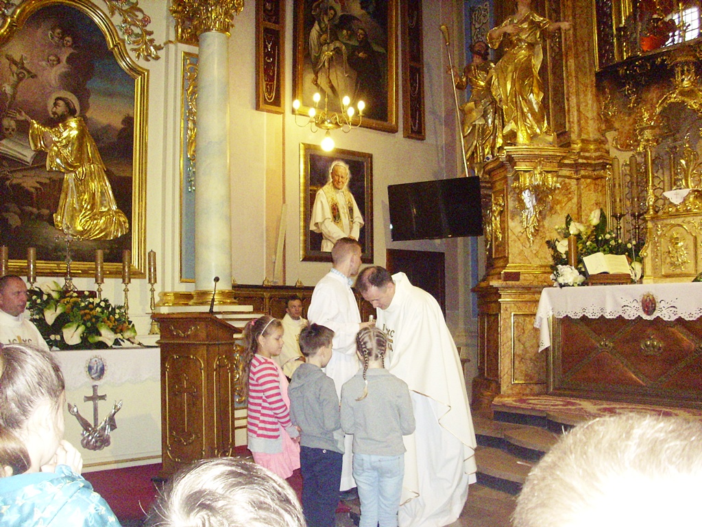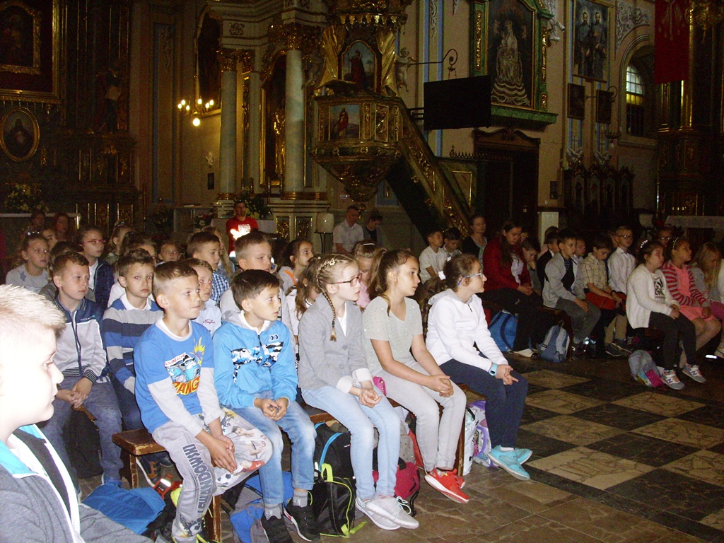 W dniu 23 maja 2018 r. uczniowie klasy III a i klasy III b pod opieką wychowawców i nauczycieli wspomagających byli na wycieczce szkolnej, której przyświecał cel religijny oraz krajoznawczo-przyrodniczy. Organizatorami wycieczki byli księża z Radymna, z obu parafii – Ks. Tomasz Ruchała i Ks. Krzysztof Szyndler oraz Rodzice. Na początku dzieci zwiedziły Sanktuarium Matki Bożej w Kalwarii Pacławskiej, poznały historię Klasztoru, Świątyni i cudownego obrazu Matki Bożej, a następnie uczestniczyły we mszy świętej. Po zakupie pamiątek w sklepiku klasztornym udaliśmy się do Myczkowic do Ośrodka Wypoczynkowo-Rehabilitacyjnego Caritas. Czekał tam na nas pyszny obiad w stołówce, a po nim odbyła się lekcja o przyrodzie bieszczadzkiej, podczas której dzieci obejrzały film przyrodniczy i zwiedziły wystawę bieszczadzkich zwierząt. Na koniec Pan Przewodnik oprowadził dzieci po Ogrodzie Biblijnym, pokazał i w ciekawy sposób opowiedział o posadzonym w nim roślinach, elementach kompozycji i ich związkach z Biblią. Podczas zwiedzania Ośrodka Caritas dzieci mogły oglądać żywe zwierzęta w Mini Zoo: jelenie, sarny, lamy, kózki, bażanty.