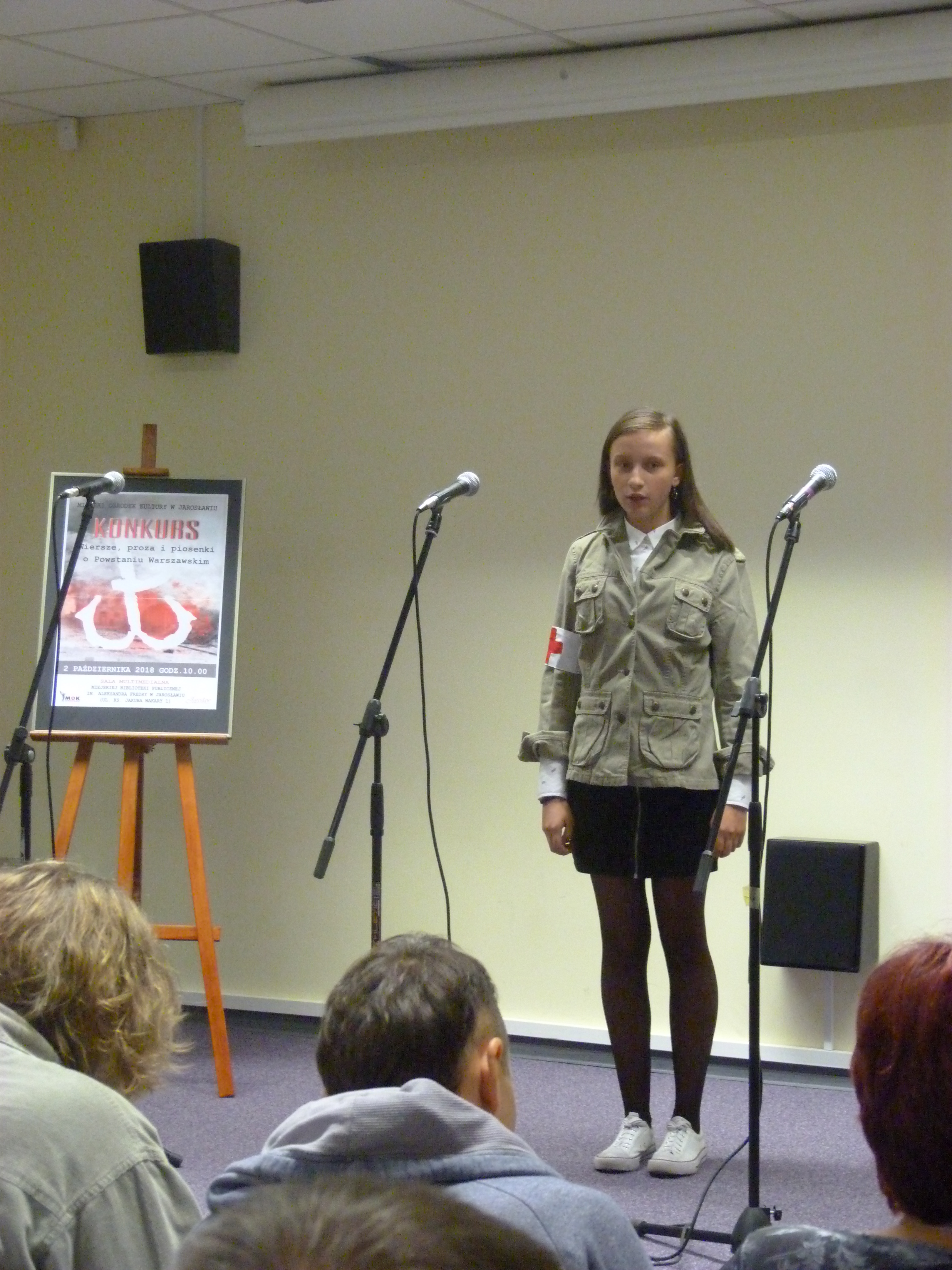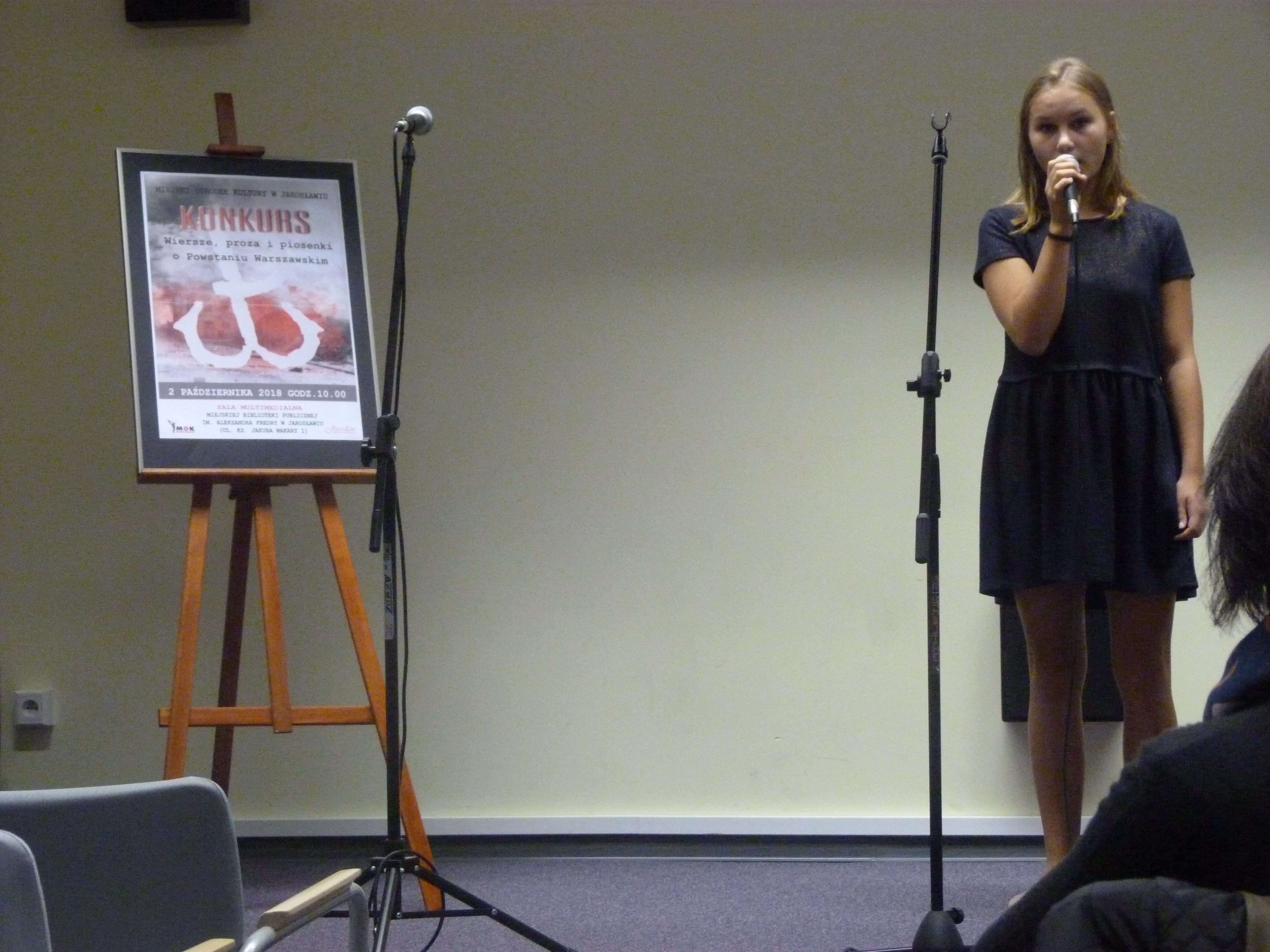 Uczennice naszej szkoły wzięły udział w piątej edycji konkursu „Wiersze, proza i piosenki o Powstaniu Warszawskim” zorganizowanym przez Miejski Ośrodek Kultury w Jarosławiu, który odbył się 2 października 2018 r. w sali multimedialnej Miejskiej Biblioteki Publicznej w Jarosławiu.