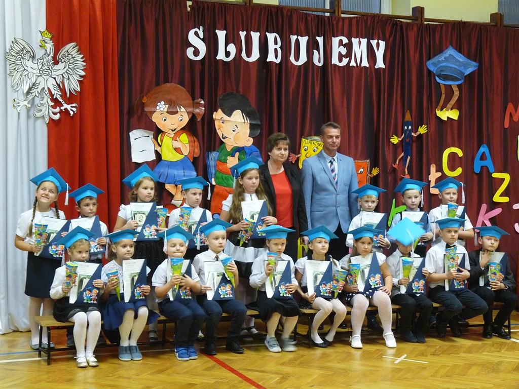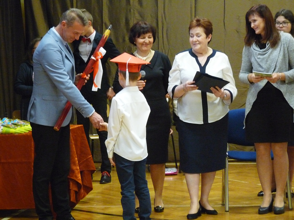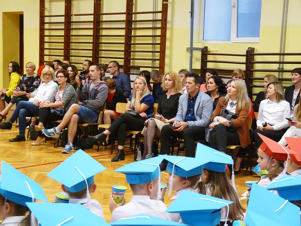 W uroczystości wzięli udział rodzice pierwszoklasistów, dyrekcja szkoły, pedagog szkolny, wychowawcy klas pierwszych oraz zaproszeni goście: dyrektor Przedszkola Samorządowego p. M. Trojnar i przewodniczący Rady Rodziców p. A. Marciak.