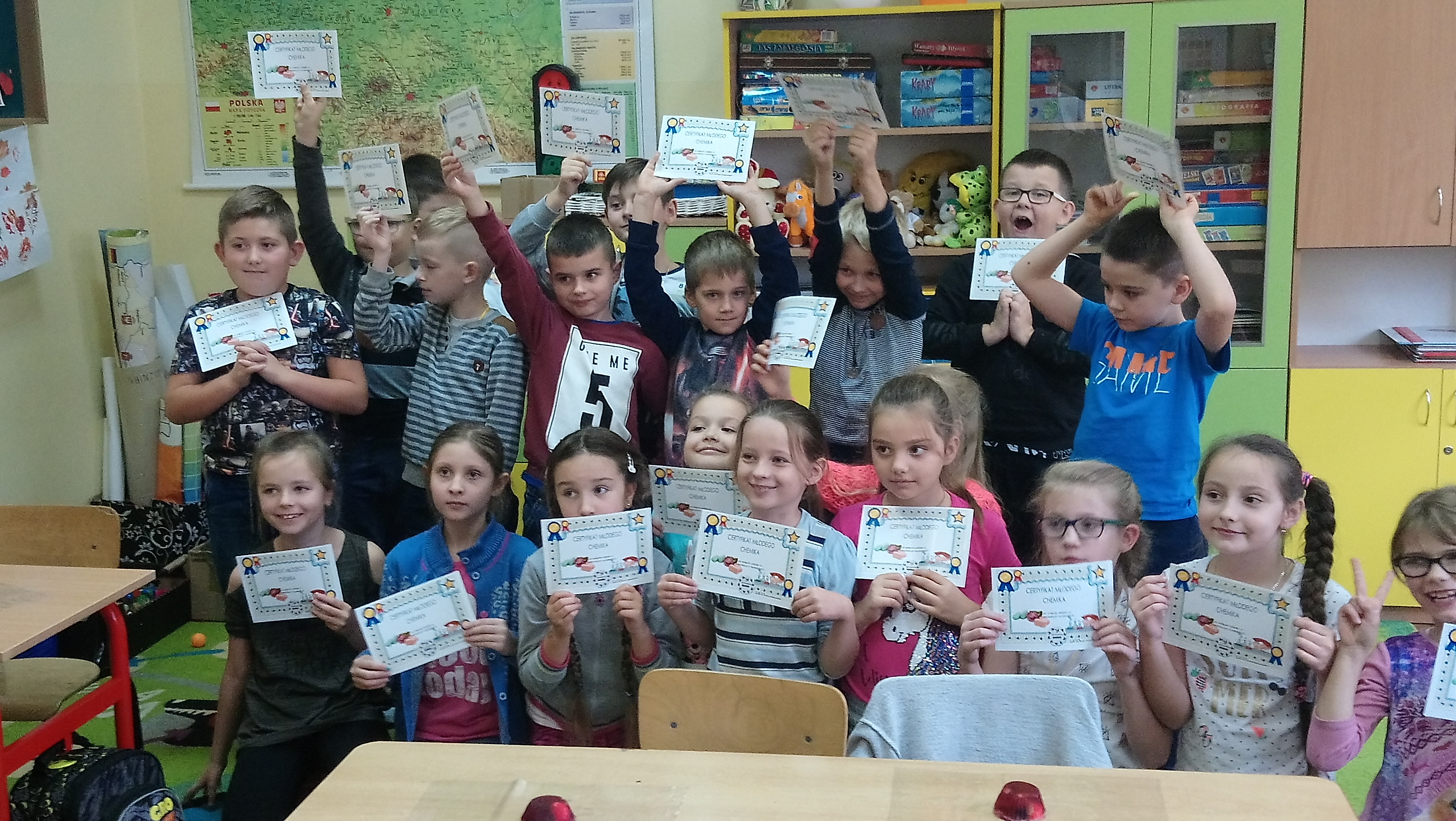 Na zakończenie warsztatów wszyscy uczestnicy otrzymali certyfikaty młodego chemika, gdyż zajęcia były nie tylko doskonałą zabawą, ale również mini lekcją chemii. Takie zajęcia rozwijają kreatywność, zdolności manualne dzieci, pobudzają wyobraźnię, zmysł estetyczny oraz dają radość tworzenia.