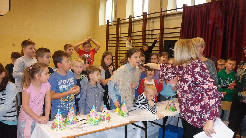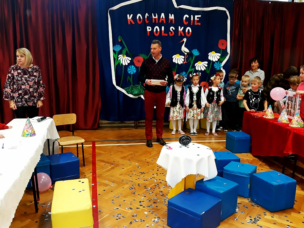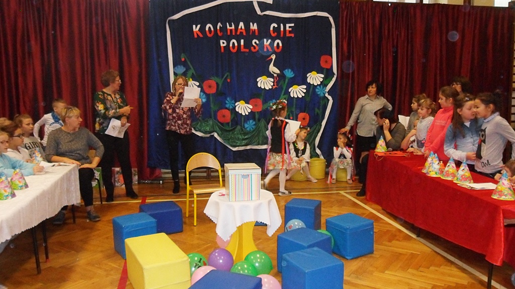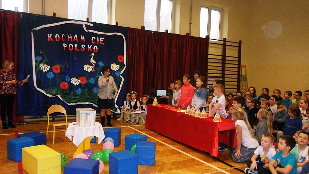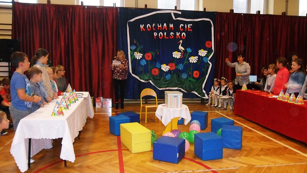 22.11.2018 r. po raz pierwszy w naszej szkole odbył się szkolny turniej Kocham Cię, Polsko. Były to rozgrywki na wzór telewizyjnego turnieju pod tym samym tytułem, a stanowiły kolejny element szkolnych obchodów 100-lecia niepodległości Polski. Do rywalizacji wiedzy o naszej ojczyźnie stanęły 2 pięcioosobowe drużyny z klas I-IV. Każdą z klas reprezentował jeden uczeń. Rywalizowały ze sobą dwie drużyny: białych i czerwonych. Pozostali uczniowie, czyli widownia z zaangażowaniem pomagali i dopingowali swoich zawodników, którzy zmagali się w sześciu konkurencjach: „ Muzyczne licytacje”, „ Co to jest?”, „Kalambury”, „ Urodziny”, „Jaka to melodia?” oraz „Koło fortuny”.