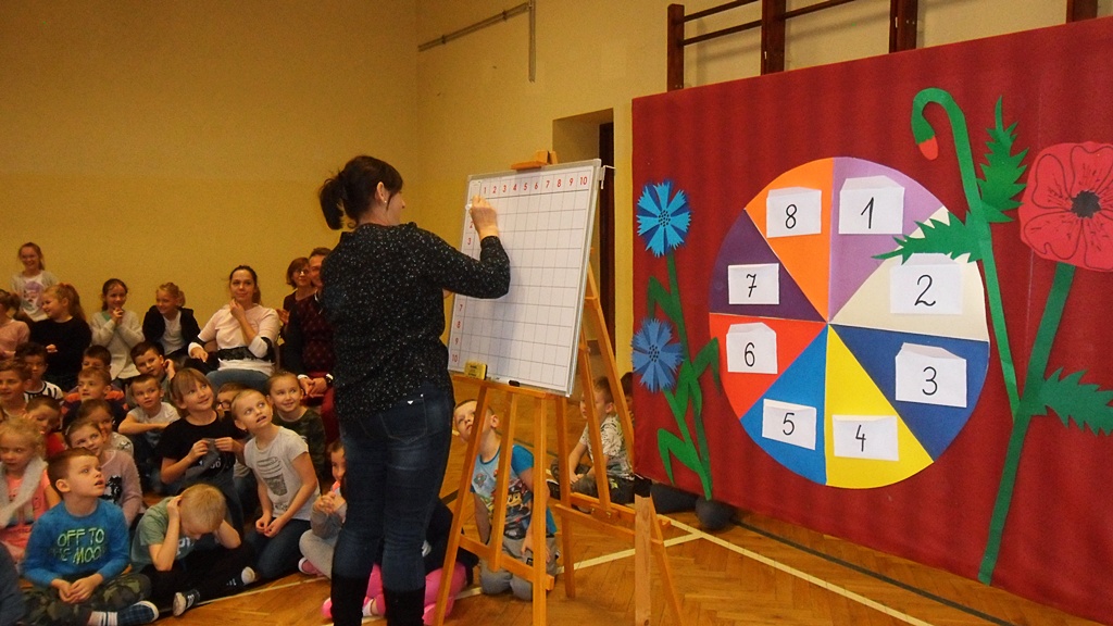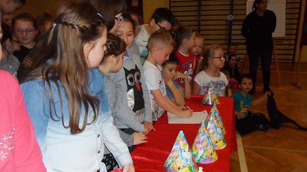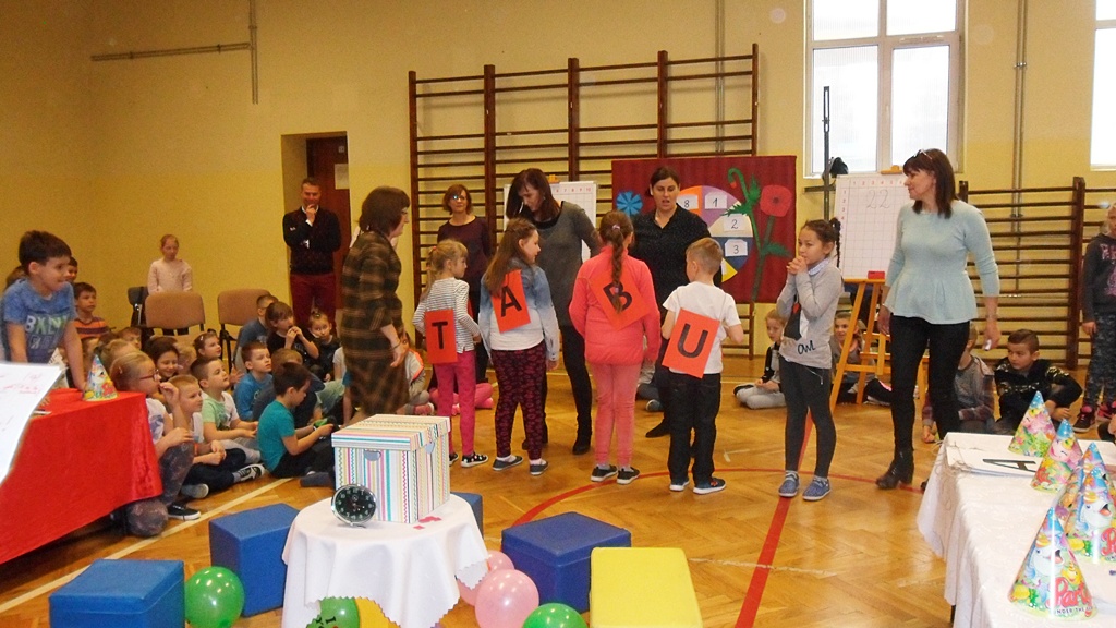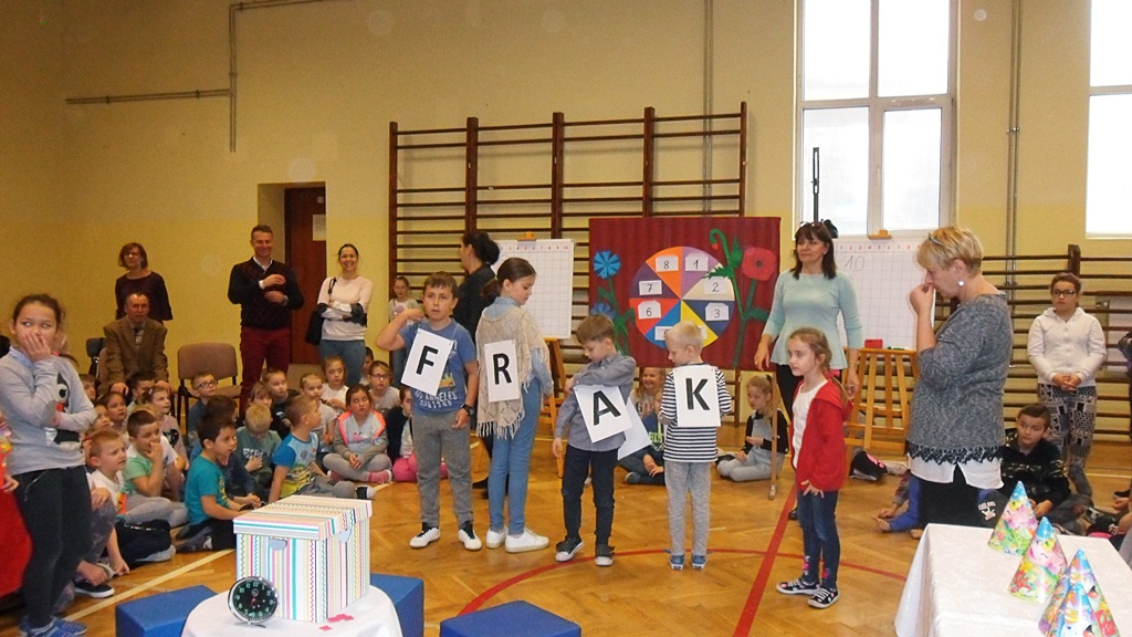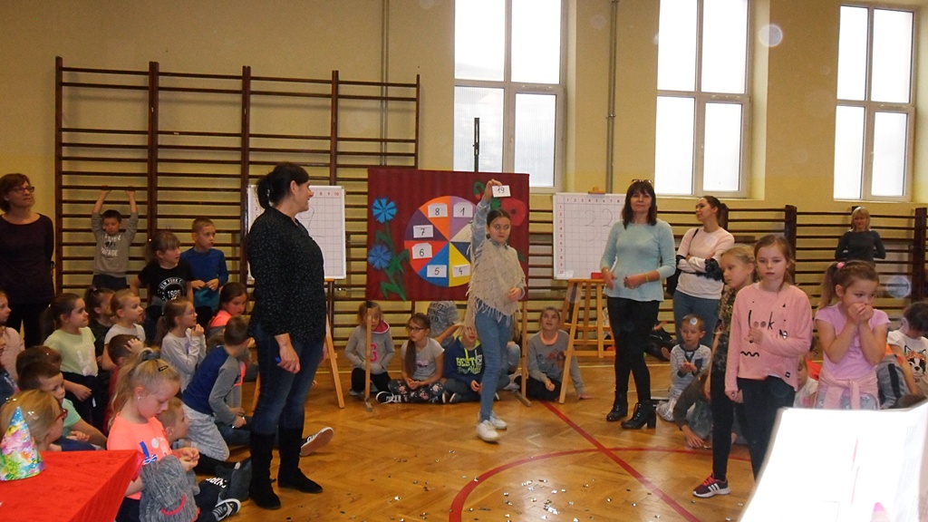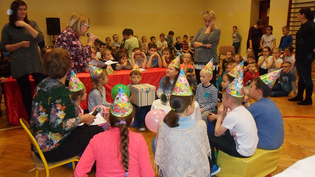 22.11.2018 r. po raz pierwszy w naszej szkole odbył się szkolny turniej Kocham Cię, Polsko. Były to rozgrywki na wzór telewizyjnego turnieju pod tym samym tytułem, a stanowiły kolejny element szkolnych obchodów 100-lecia niepodległości Polski. Do rywalizacji wiedzy o naszej ojczyźnie stanęły 2 pięcioosobowe drużyny z klas I-IV. Każdą z klas reprezentował jeden uczeń. Rywalizowały ze sobą dwie drużyny: białych i czerwonych. Pozostali uczniowie, czyli widownia z zaangażowaniem pomagali i dopingowali swoich zawodników, którzy zmagali się w sześciu konkurencjach: „ Muzyczne licytacje”, „ Co to jest?”, „Kalambury”, „ Urodziny”, „Jaka to melodia?” oraz „Koło fortuny”.