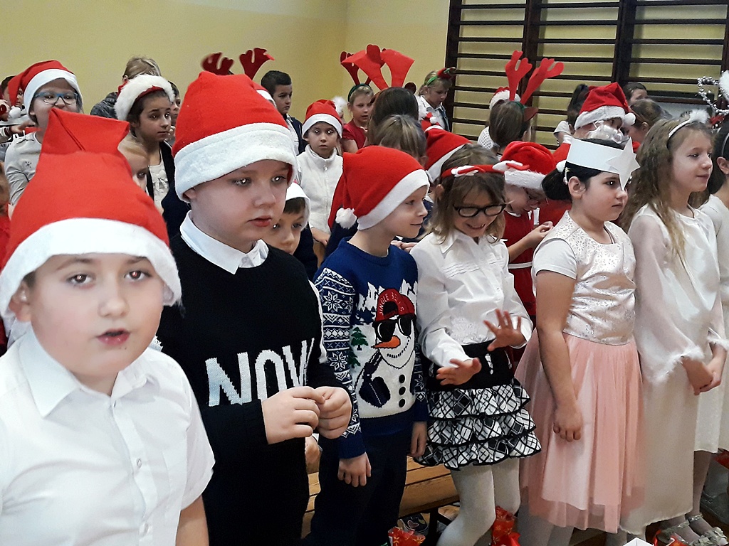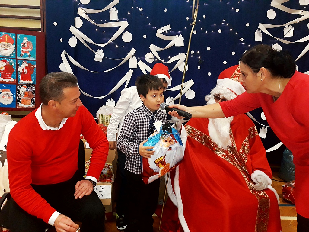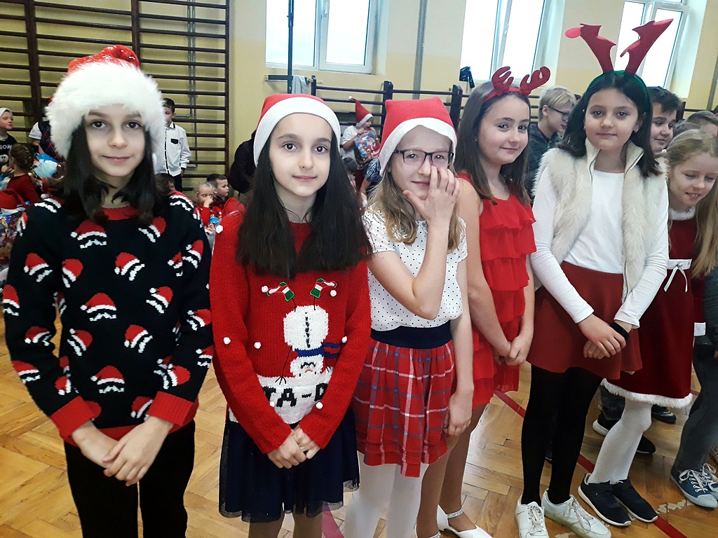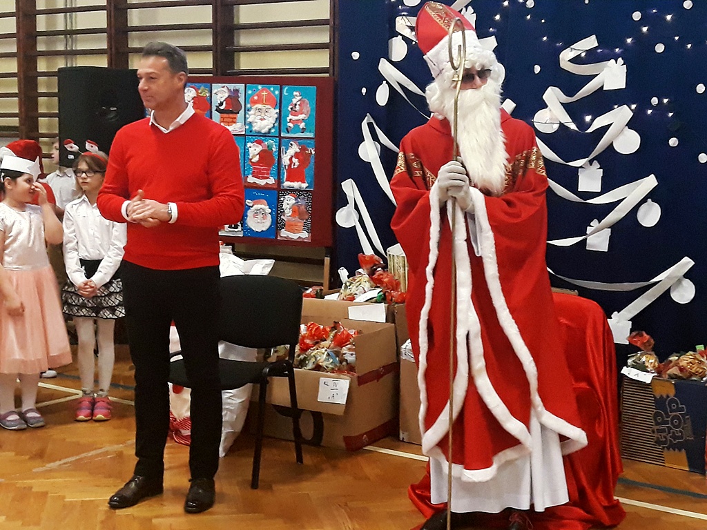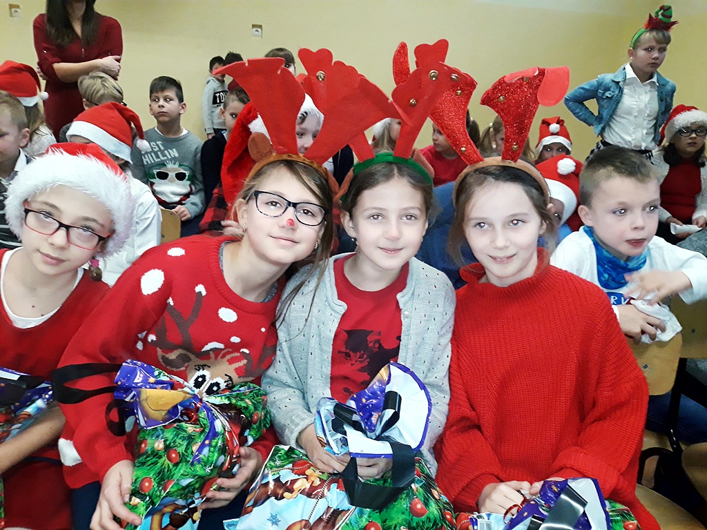 Pomimo braku białego puchu pojawił się 6 grudnia w naszej szkole ten długo oczekiwany gość – Święty Mikołaj. Został przywitany wierszem, tańcem i piosenką. Na twarzach dzieci widać było wielkie wzruszenie i zadowolenie. Po występach wszyscy z pewną niecierpliwością oczekiwali na prezenty. Nikt nie został pominięty, Święty Mikołaj pamiętał o wszystkich. Po otrzymaniu prezentów rozpoczęło się gorączkowe sprawdzanie ich zawartości. Po uśmiechniętych buziach można było się domyślać, że Święty Mikołaj trafił z podarunkami.