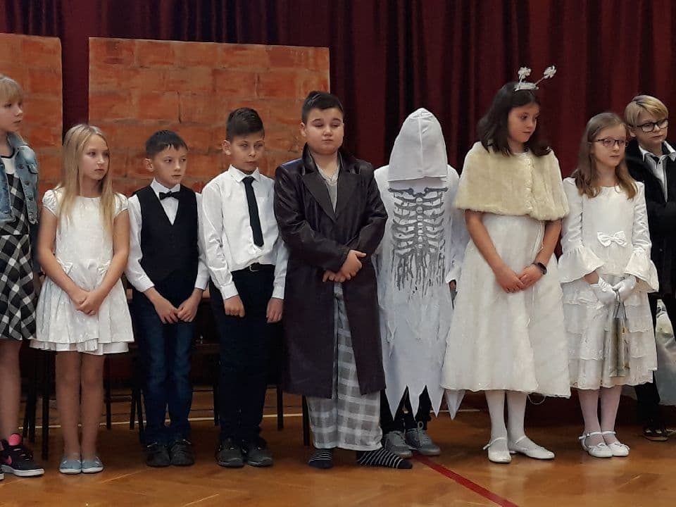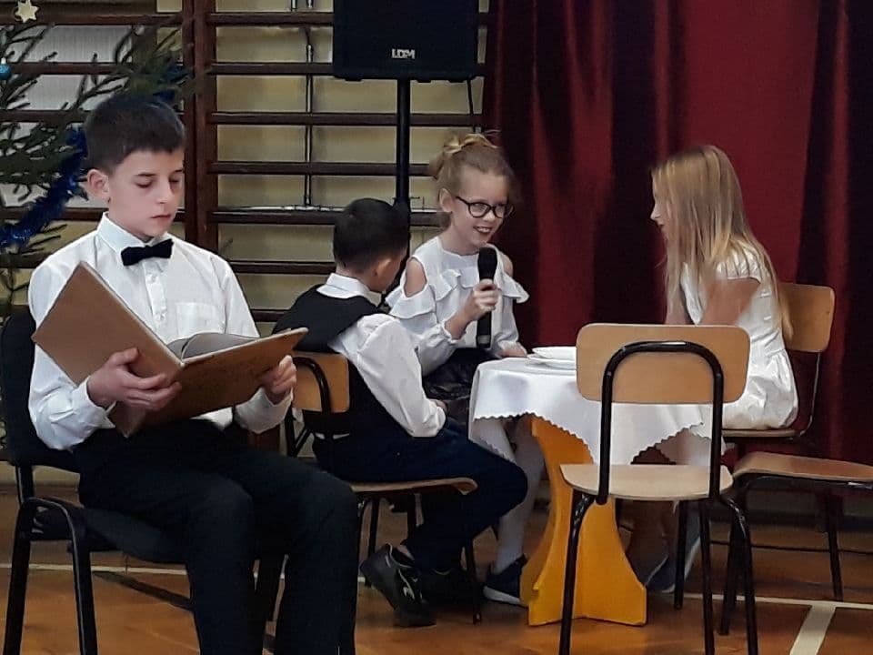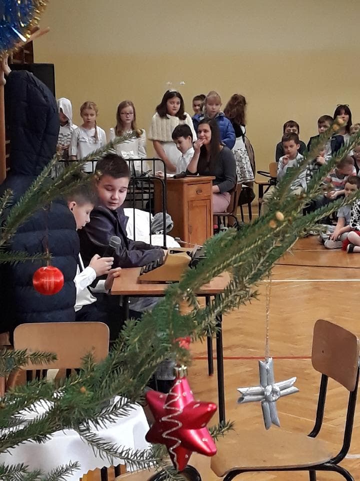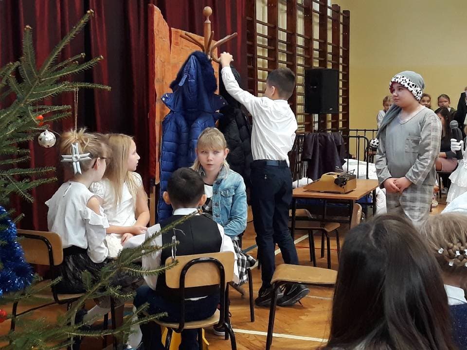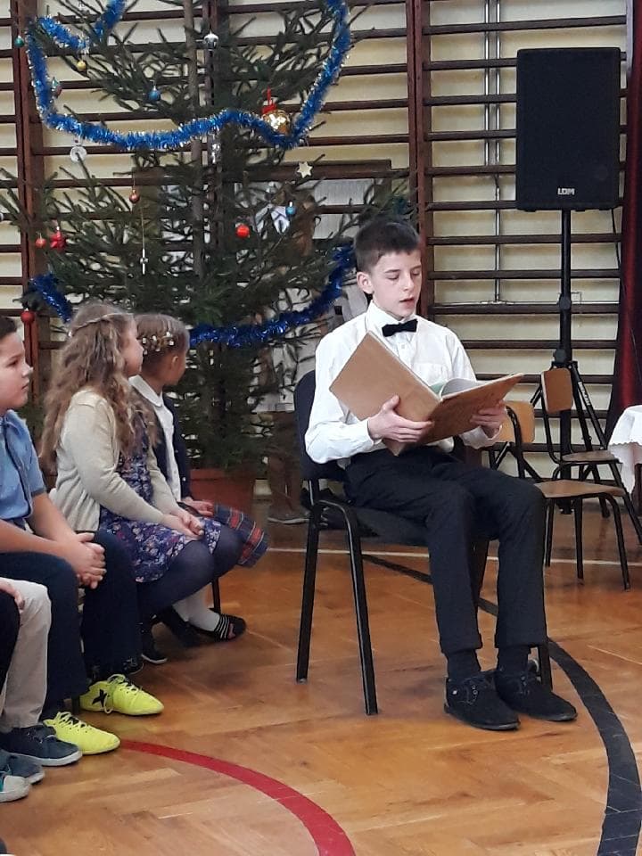 W dniu 21 grudnia w naszej szkole odbyła się uroczystość z okazji zbliżających się Świąt Bożego Narodzenia. Dzień zaczął się od spotkania uczniów z nauczycielami i dyrekcją szkoły na przedstawieniu przygotowanym przez uczniów klasy 4b pt. „Opowieść Wigilijna”. Następnie uczniowie poszczególnych klas wraz ze swoimi wychowawcami spotkali się w salach na „Wigiliach klasowych”, gdzie przy wspólnym kolędowaniu spędzili ostatni dzień szkoły w 2018 roku.