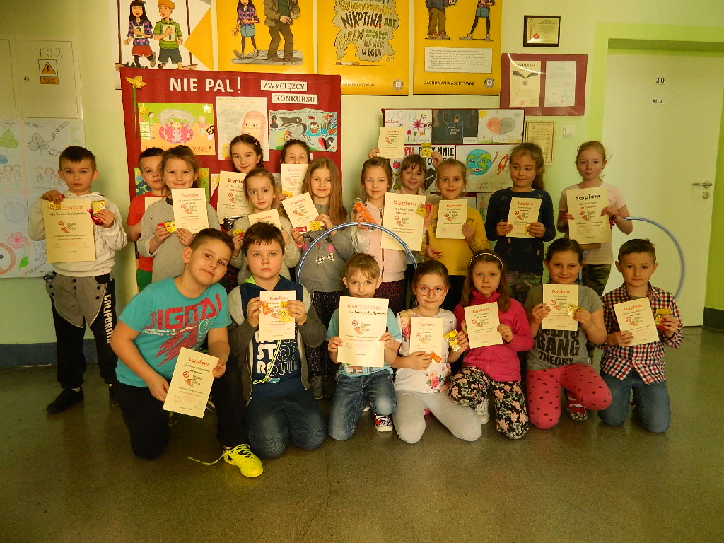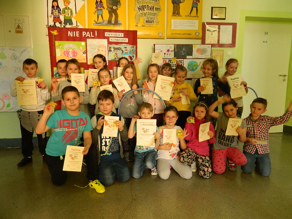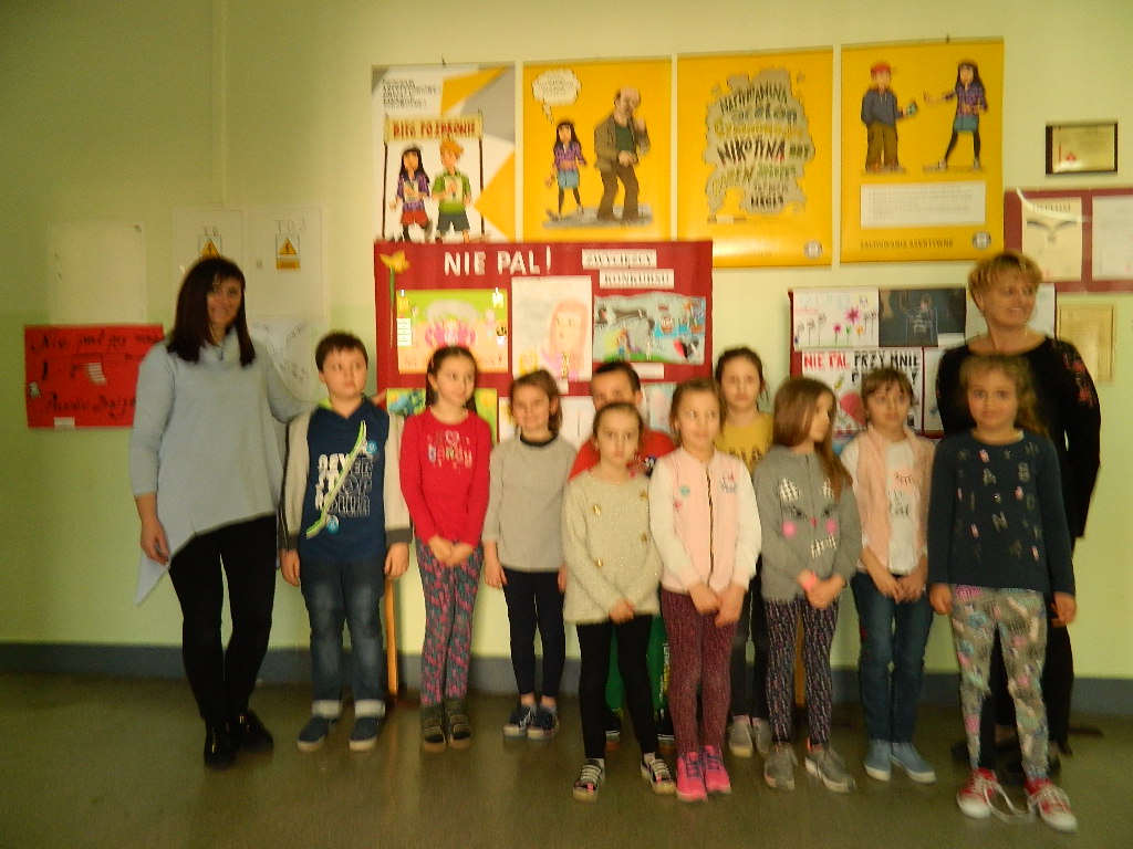Prace za I, II, III miejsce przeszły do II etapu konkursu „Nie pal przy mnie proszę”. Wyróżnienie na szczeblu powiatowym otrzymała Milena Bojarska z klasy II b.