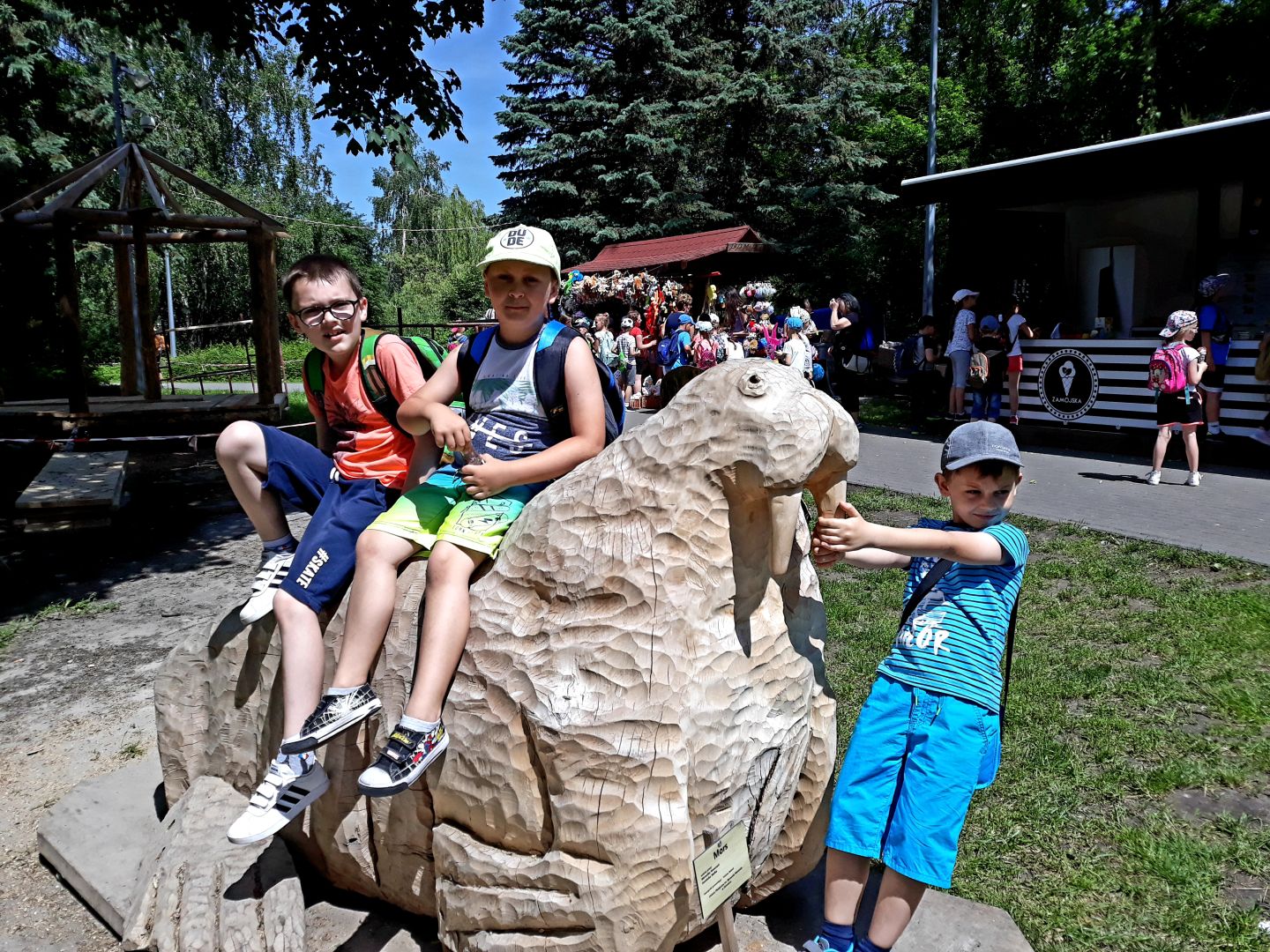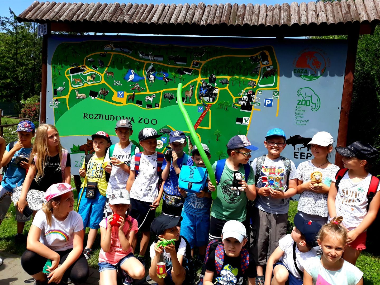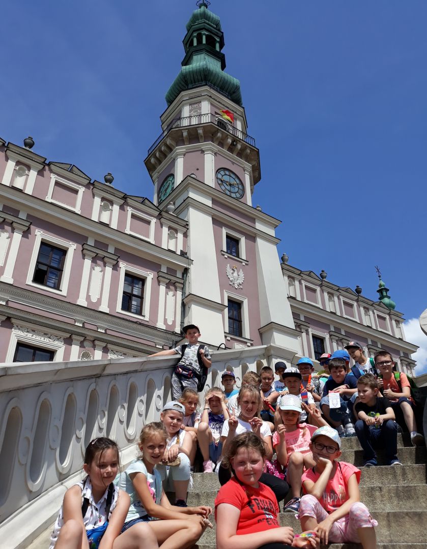 Tego dnia od rana mieliśmy piękną, słoneczną pogodę. Program wycieczki obejmował zwiedzanie zoo, zabawy na świeżym powietrzu, spacer po Rynku, kupowanie pamiątek, obiad oraz zwiedzanie Katedry. W drodze wszyscy zachwycali się pięknem przyrody Roztocza oraz okolic Zamościa. Na miejscu uczniowie zapoznali się z gatunkami oraz warunkami życia zwierząt mieszkających w zoo. Największe wrażenie na uczniach wywarło terrarium z różnorodnymi gatunkami ryb, gadów i płazów. Niezwykłe wrażenie zrobiła też motylarnia. Zresztą każdy znalazł coś, co go interesowało. W drodze na Rynek uczniowie zwiedzili Katedrę. Po obejrzeniu Rynku, znalazł się czas na obiad, lody i kupowanie pamiątek.