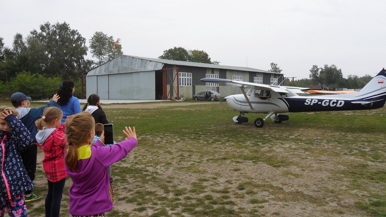 25 września klasa 2a uczestniczyła w wycieczce do Laszek na lotnisko Aeroklubu Ziemi Jarosławskiej, gdzie pan Mirosław Chomik /tata ucznia/ opowiedział o swojej pasji latania. Dzieci obejrzały szybowce, paralotnię, samoloty i mogły sprawdzić, jak siedzi się w kabinie pilota, czy też w „kokonie” lotni. Był to przyjemny czas „lekcji w terenie”, który na pewno uczniowie zapamiętają, a może też zainteresują się takim sportem w przyszłości.