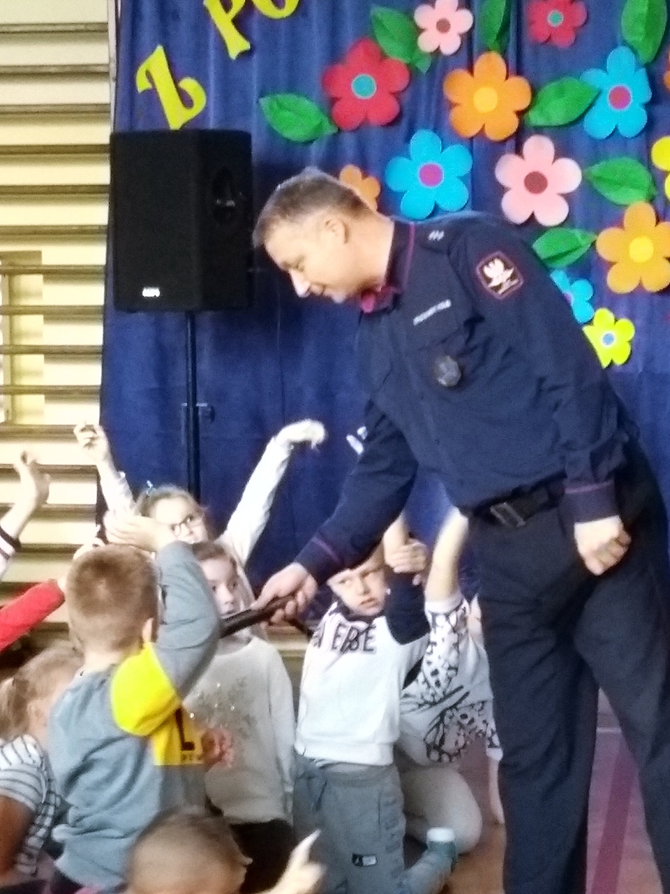 Podczas spotkania uczniowie mogli zobaczyć i przymierzyć strój i sprzęt Straży Ochrony Kolei oraz poznać ich pracę. Duże zainteresowanie wśród dzieci wzbudził pies odpowiednio przeszkolony do pracy na kolei.