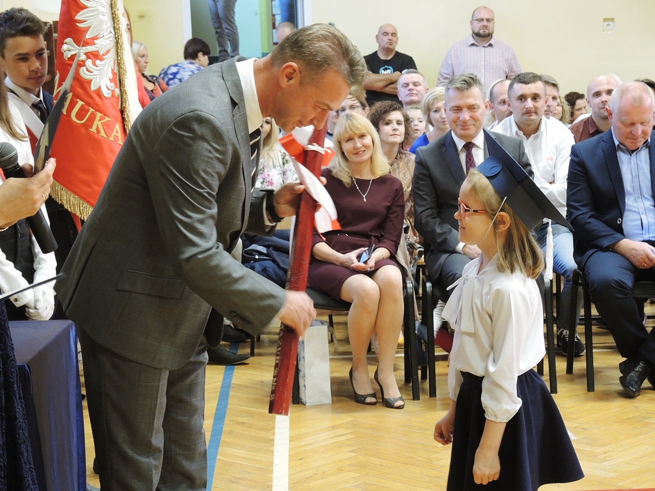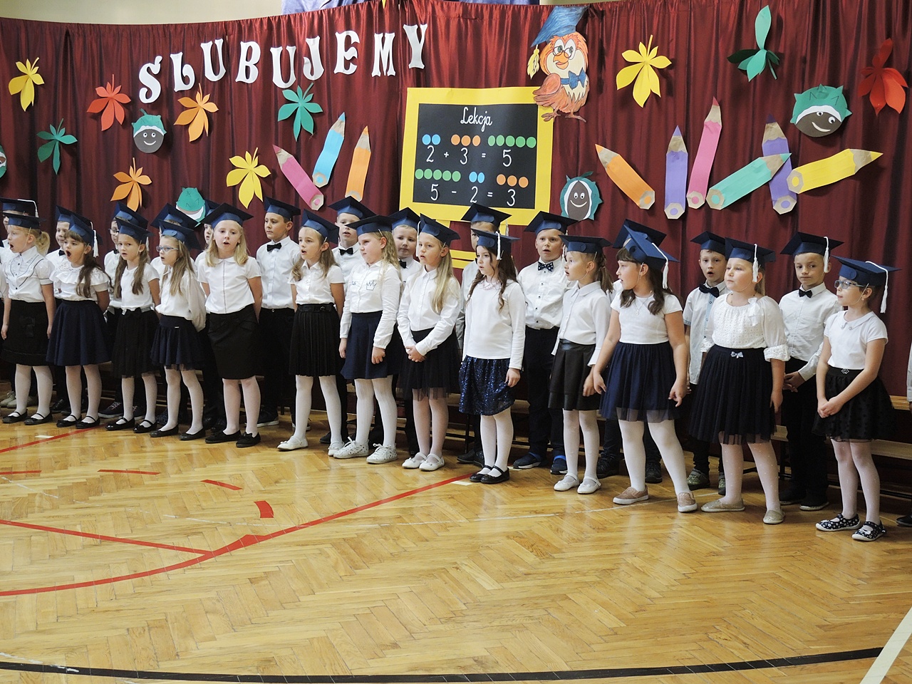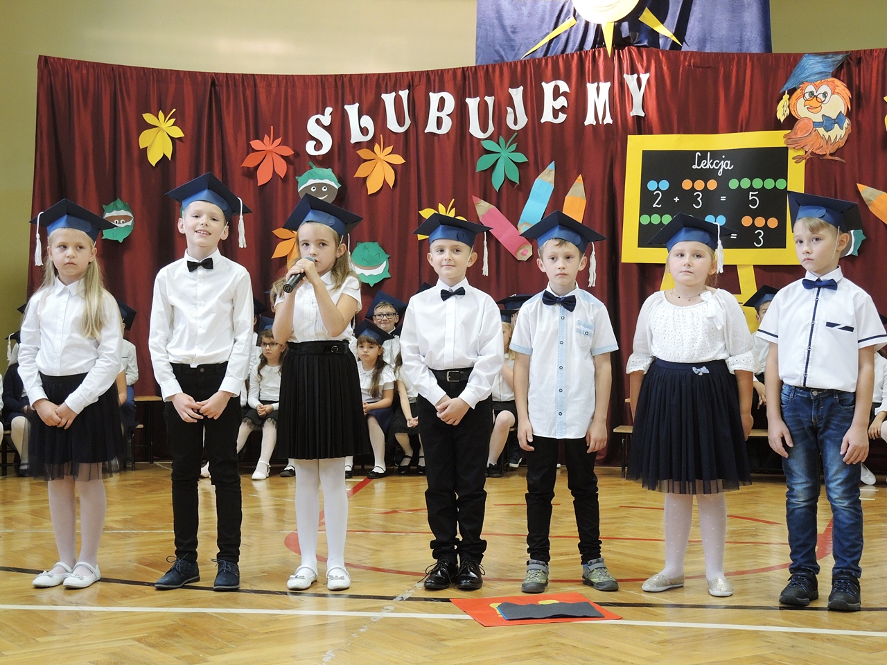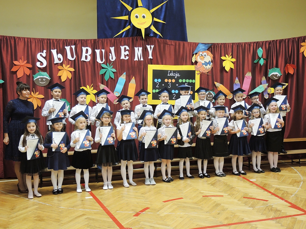 23 października 2019 r. grupa 48 „pierwszaków” składając uroczyste ślubowanie dołączyła do grona uczniów. Na ceremonię przybyli zaproszeni goście: Burmistrz Miasta Mieczysław Piziurny, Przewodniczący Rady Miasta Andrzej Pacek, Przewodniczący Rady Rodziców Artur Marciak, Dyrektor Przedszkola Samorządowego Małgorzata Trojnar, Dyrektor Przedszkola Parafialnego Siostra Magdalena Rut, Pan Dyrektor Paweł Kalisz, Pani Wicedyrektor Alina Suchy oraz rodzice pierwszoklasistów.