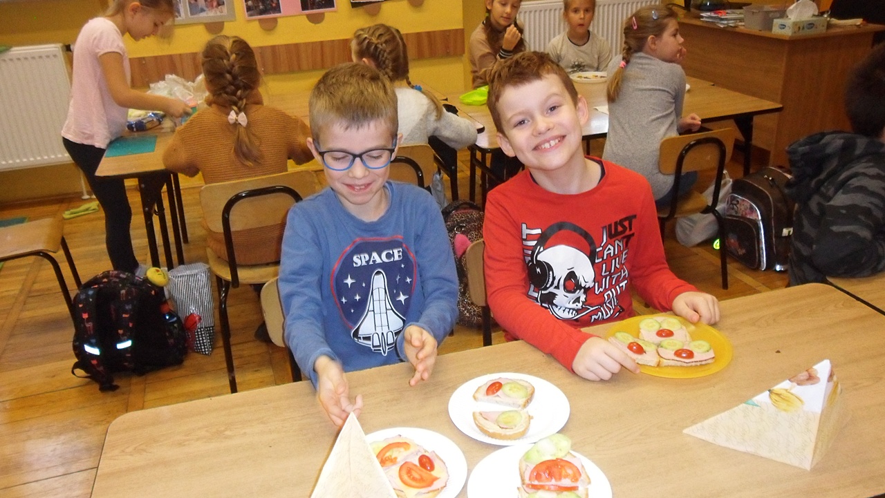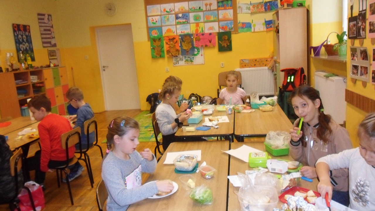 W dniu 13 listopada dzieci z klas I-III uczestniczyły w akcji „Śniadanie daje moc”. Każda z klas wraz z wychowawcą ustaliła, jaki zdrowy posiłek wykona w tym dniu. Wszystkie dzieci ochoczo przystąpiły do pracy, której efektem były zdrowe surówki i soki, pyszne owocowe szaszłyki i kolorowe, smaczne kanapki.