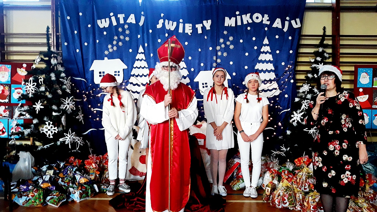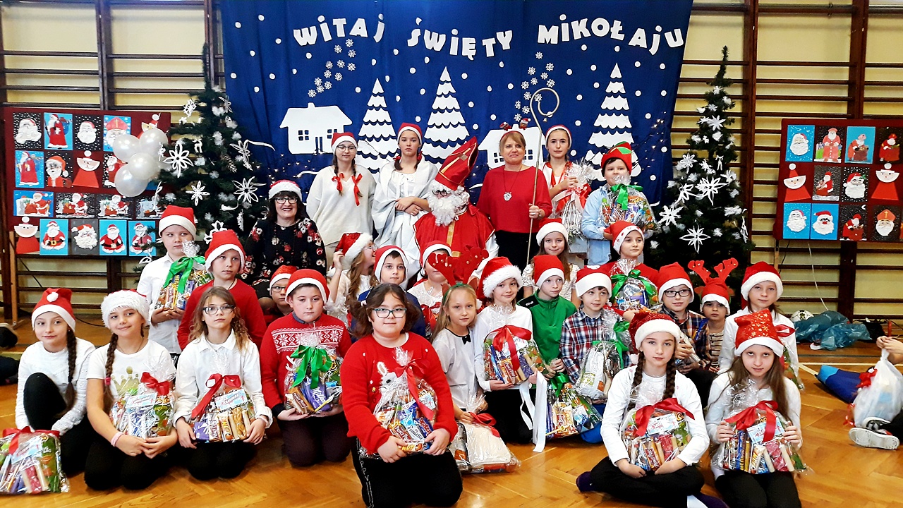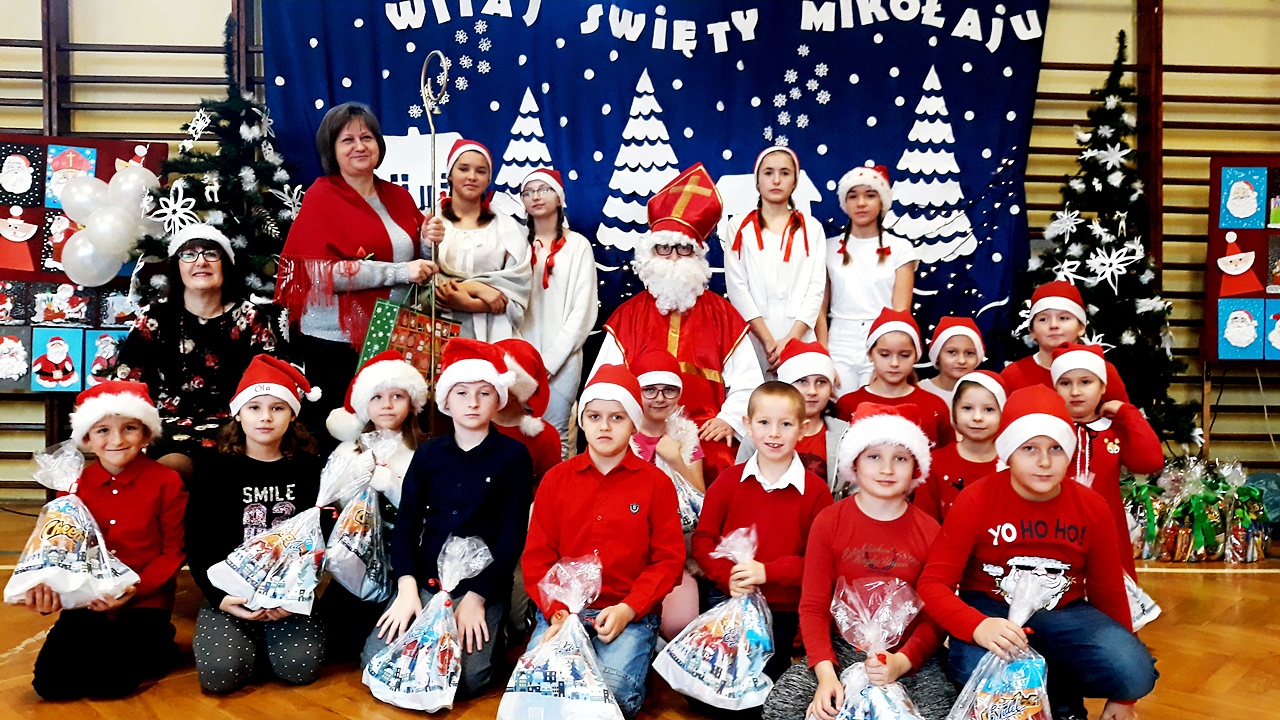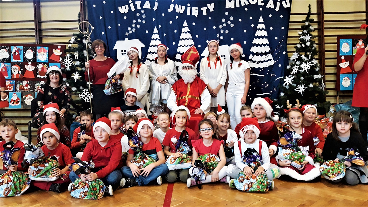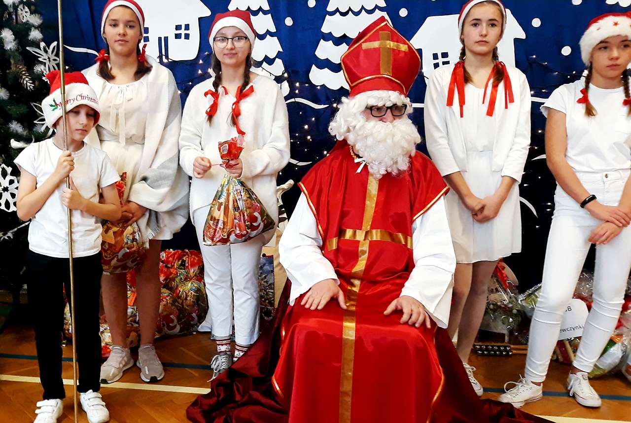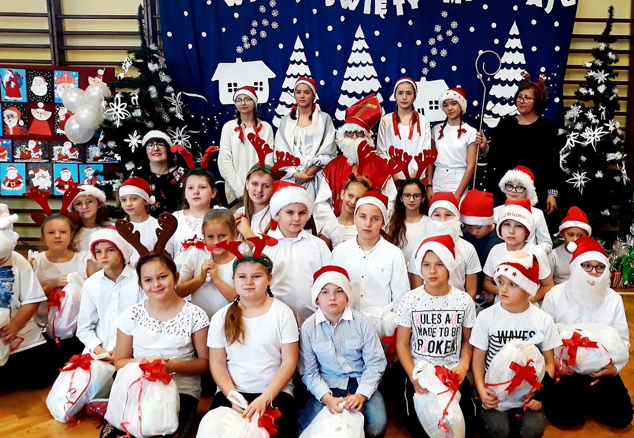 5 grudnia od samego rana w naszej szkole zapanowała atmosfera napięcia i wyczekiwania. Miły nastrój szybko wszystkim się udzielał. Po korytarzach kręciły się dzieci ubrane na czerwono, w pięknych mikołajkowych czapkach. Na tę jedyną w roku wizytę z niecierpliwością, czekały przecież cały rok.