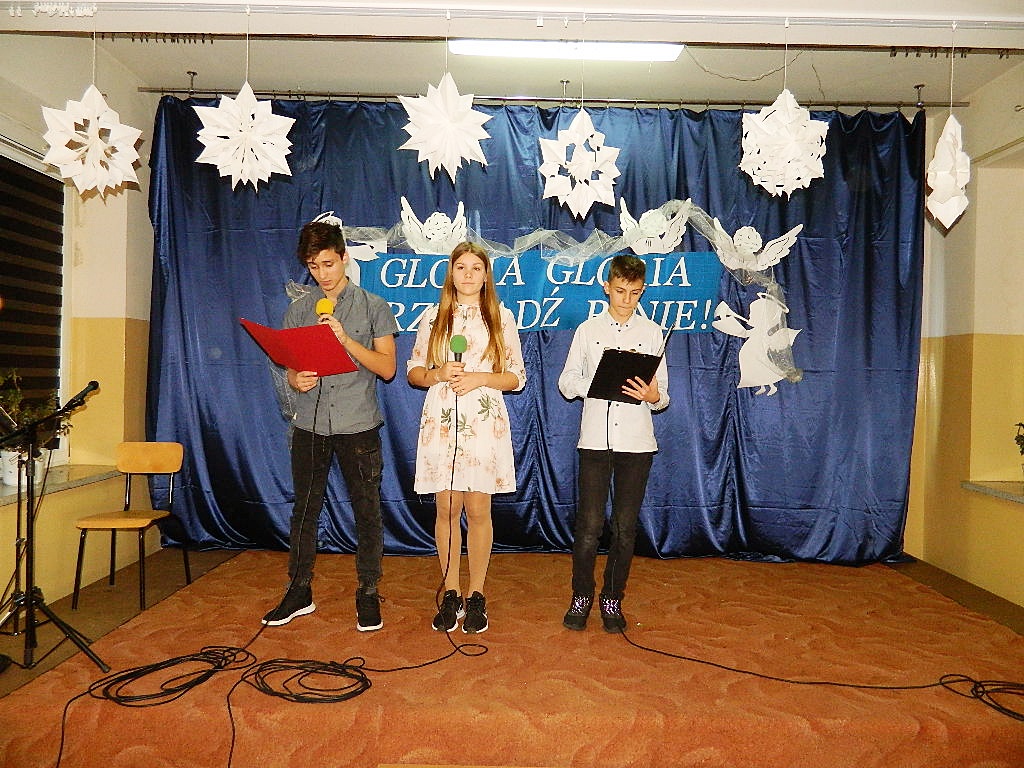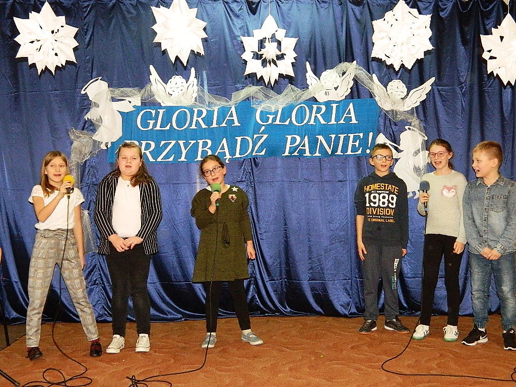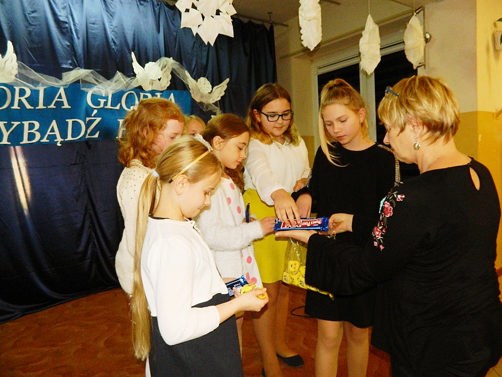 Koncert odbył się w naszej szkole 18 grudnia. Wzięło w nim udział 58 uczniów. Podczas spotkania młodzi artyści zaprezentowali swoje muzyczne, wokalne i recytatorskie talenty wprowadzając wszystkich obecnych w atmosferę zbliżających się świąt Bożego Narodzenia. Uczestnicy zostali obdarowani upominkami i słodyczami.