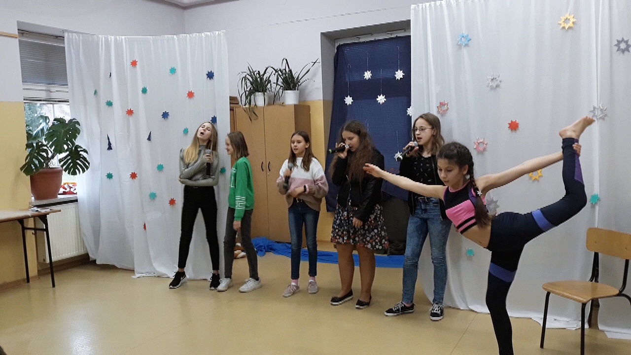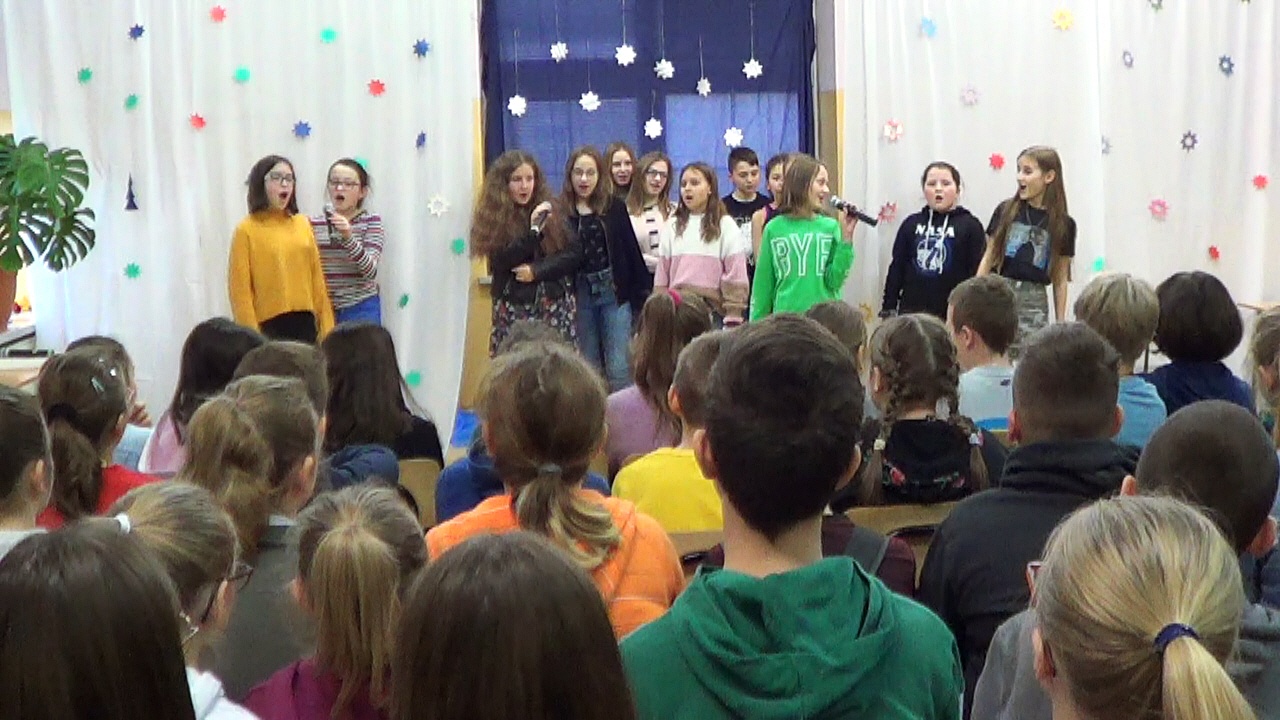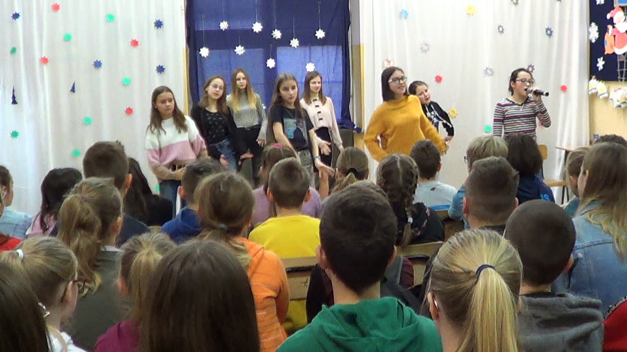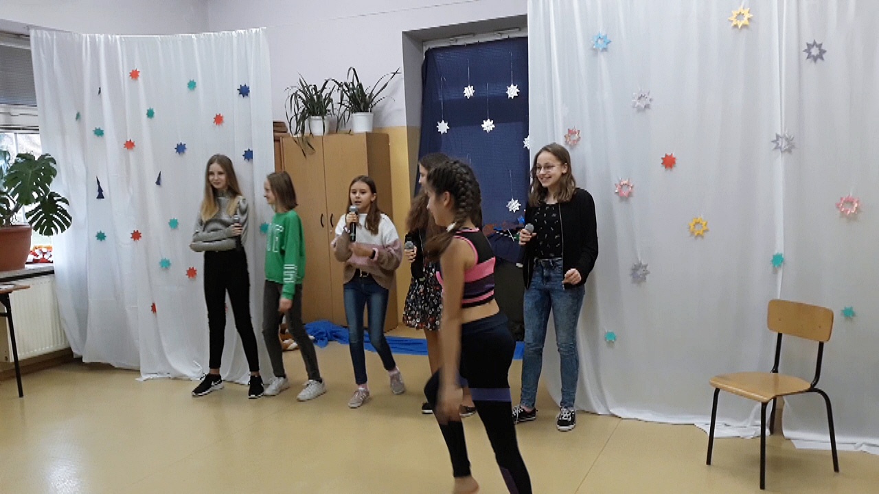10 grudnia w naszej szkole sala nr 7 zamieniła się w teatr. Szkolne Koło Teatralne zaprezentowało koleżankom i kolegom musical pt. „Z NASZYMI MARZENIAMI” zrealizowany na podstawie własnego scenariusza. Kolorowa scenografia, rekwizyty i muzyka zachęcały do przeniesienia się w różne miejsca z naszej wyobraźni. Dodatkowym atutem inscenizacji było zwrócenie uwagi na problemy młodych ludzi związane z niską samooceną. Piosenki, układy taneczne, sceny ze szkolnego życia wzięte, humor sytuacyjny oraz pokaz akrobatyczny sprawiły, że publiczność obejrzała przedstawienie z zainteresowaniem