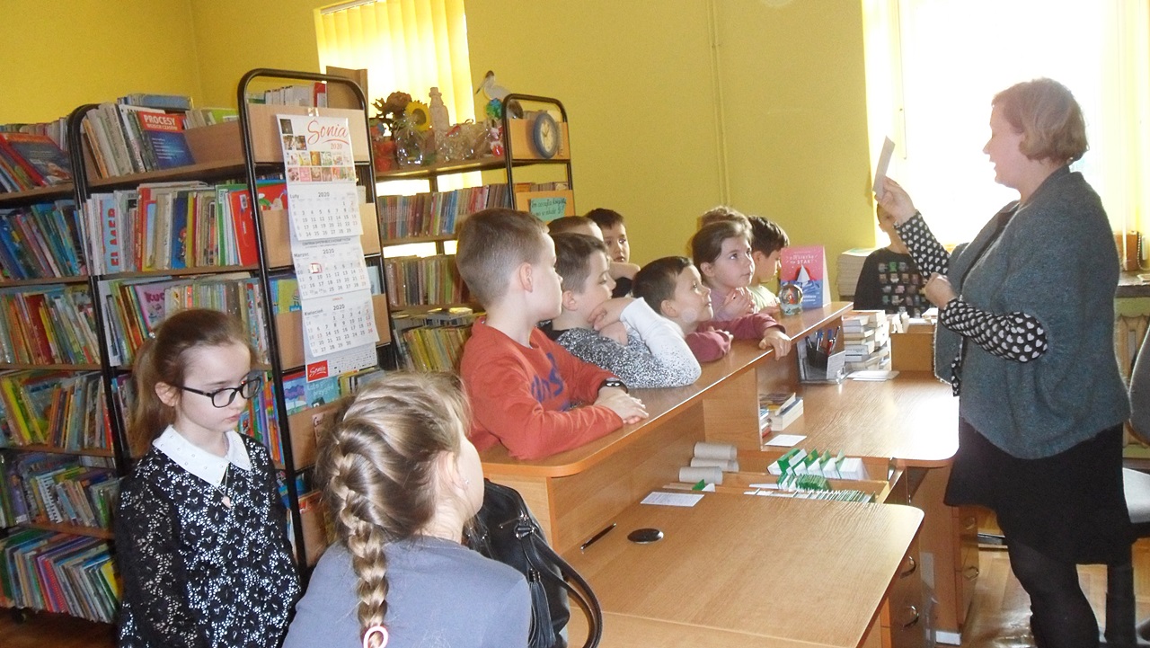 3marca b.r. klasa 2a odwiedziła Miejską Bibliotekę Publiczną w Radymnie.Pani Agnieszka Bojarska oprowadziła dzieci po wszystkich pomieszczeniach biblioteki opowiadając o zgromadzonych książkach, sposobie ich porządkowania, katalogowania, szukania, czy jest potrzebna nam książka i gdzie się znajduje. Był czas na samodzielne wyszukiwanie i przeglądanie ciekawych pozycji oraz słuchanie czytanych fragmentów ulubionych bajek. Dzieci dowiedziały się, jak można zapisać się do Miejskiej Biblioteki Publicznej i jakie są zasady korzystania z wypożyczalni. Z pewnością to spotkanie zachęci dzieci do częstszego spędzania czasu wolnego –z ciekawą książką.