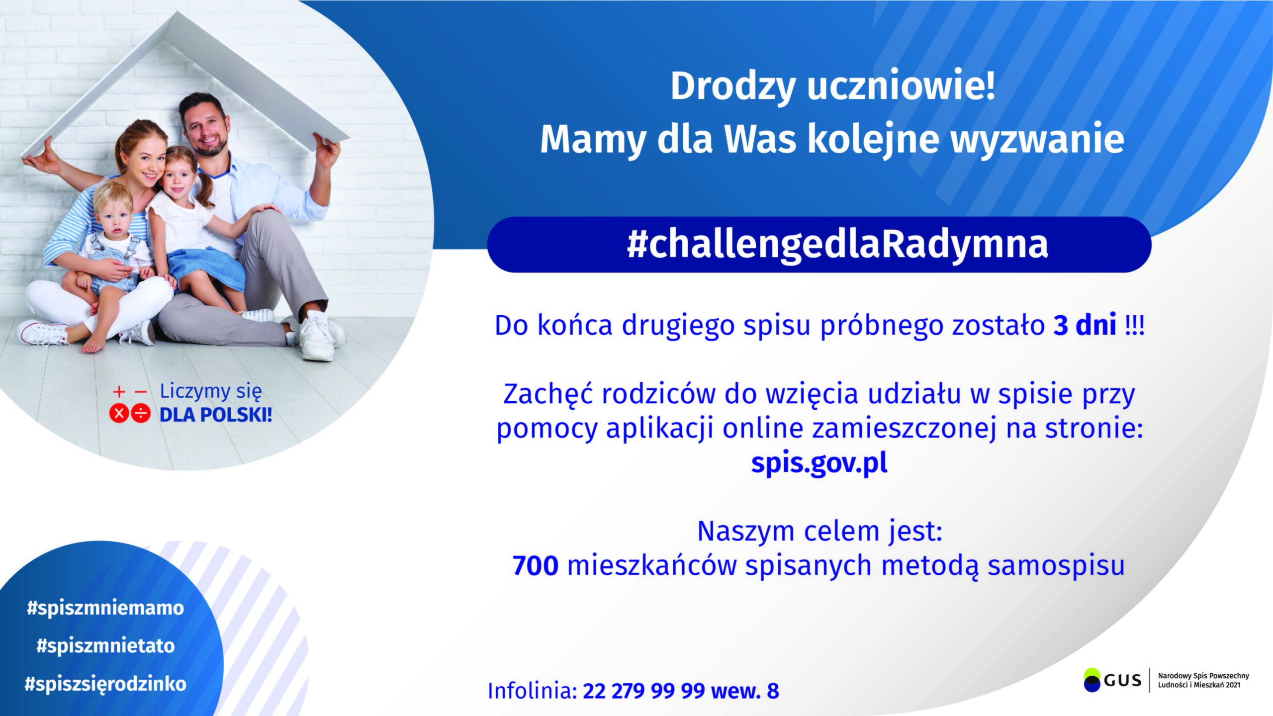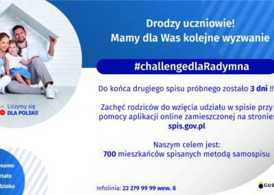 #challengedlaRadymna utworzone przez admin | Kwi 16, 2020 | Aktualności #Samospis w naszym mieście jest już prawie na finiszu. Zachęcamy rodziców i uczniów do podjęcia kolejnego wyzwania. Za osiągnięty cel będą kolejne nagrody dla naszej szkoły. challenge 2_Obszar roboczy 1